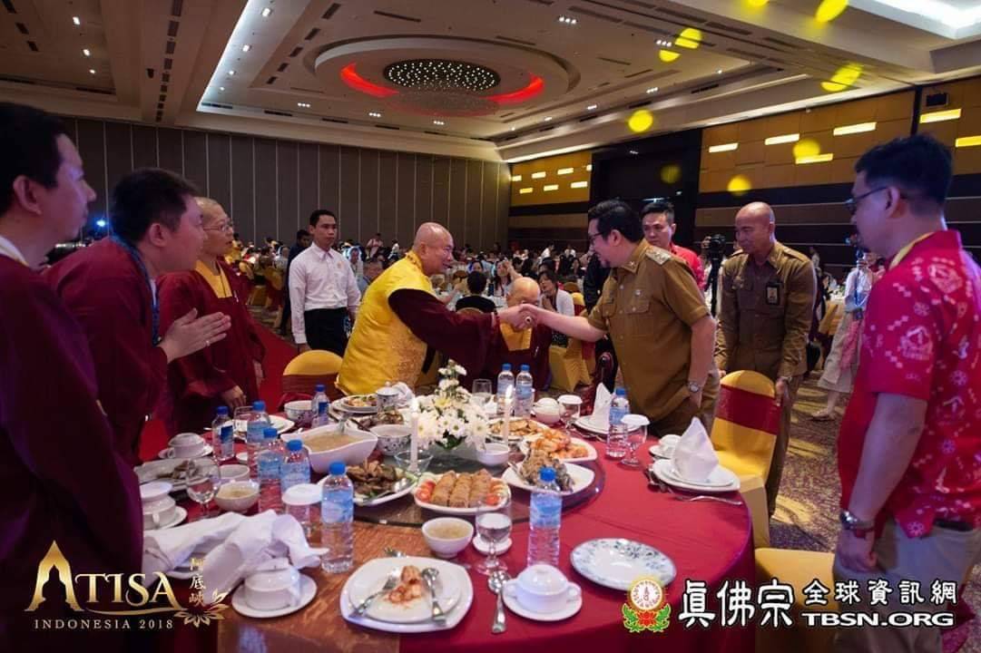 2018年12月10日,須彌雷藏寺眾理事與同門設宴感恩聖尊蓮生法王。是日午餐假座於Novotel Hotel舉行,萬牙老副市長Mor Bastian,市議員長Andrei angouw特別蒞臨面見聖尊。