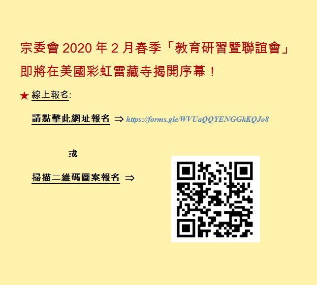 【教育研字第20190013號 :宗委會2020年2月春季「教育研習暨聯誼會」即將在美國彩虹雷藏寺揭開序幕 】
