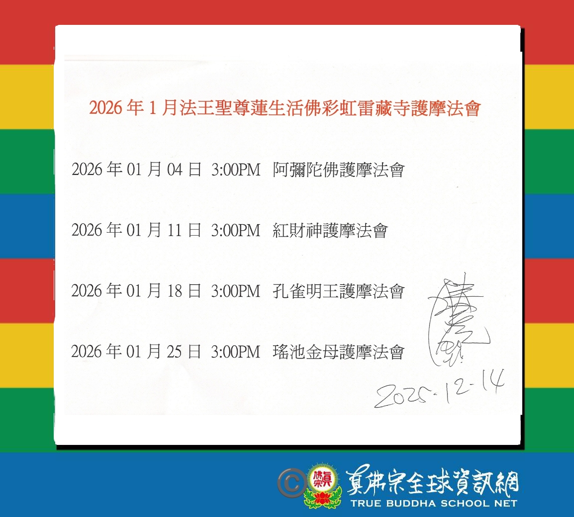 日期:2026/01/14 地點:彩虹雷藏寺 15:00(台灣時間)
