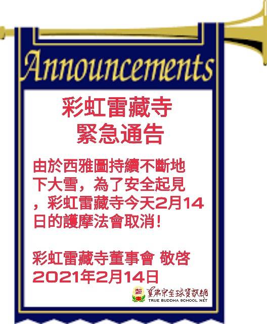 日期:2021/02/15 地點:彩虹雷藏寺 09:00(台灣時間)