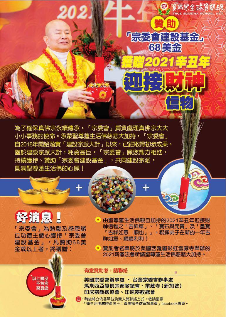 贊助 宗委會建設基金 辛丑年 接財神 吉祥草