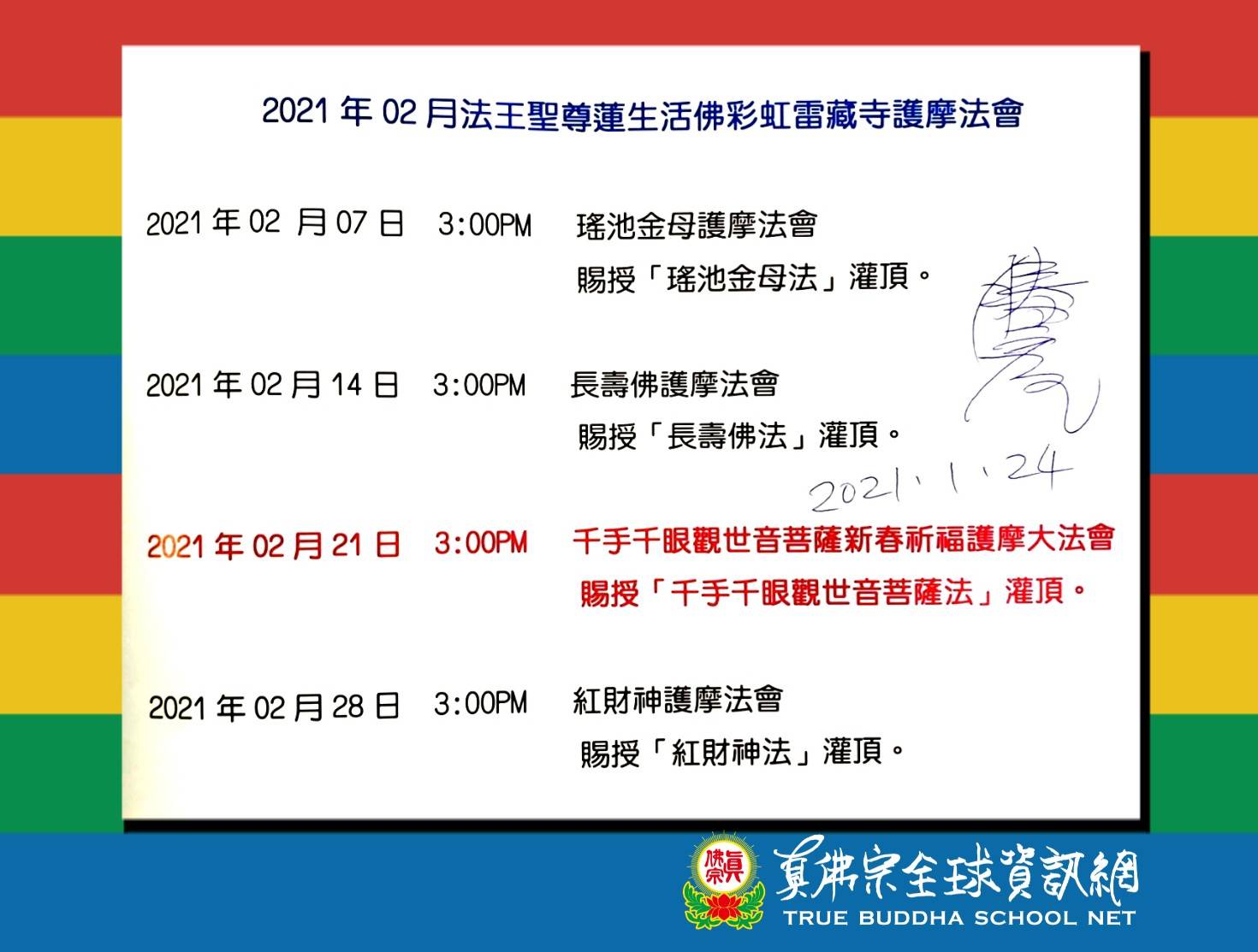 日期:2021/01/21 地點:彩虹雷藏寺 16:00(台灣時間)