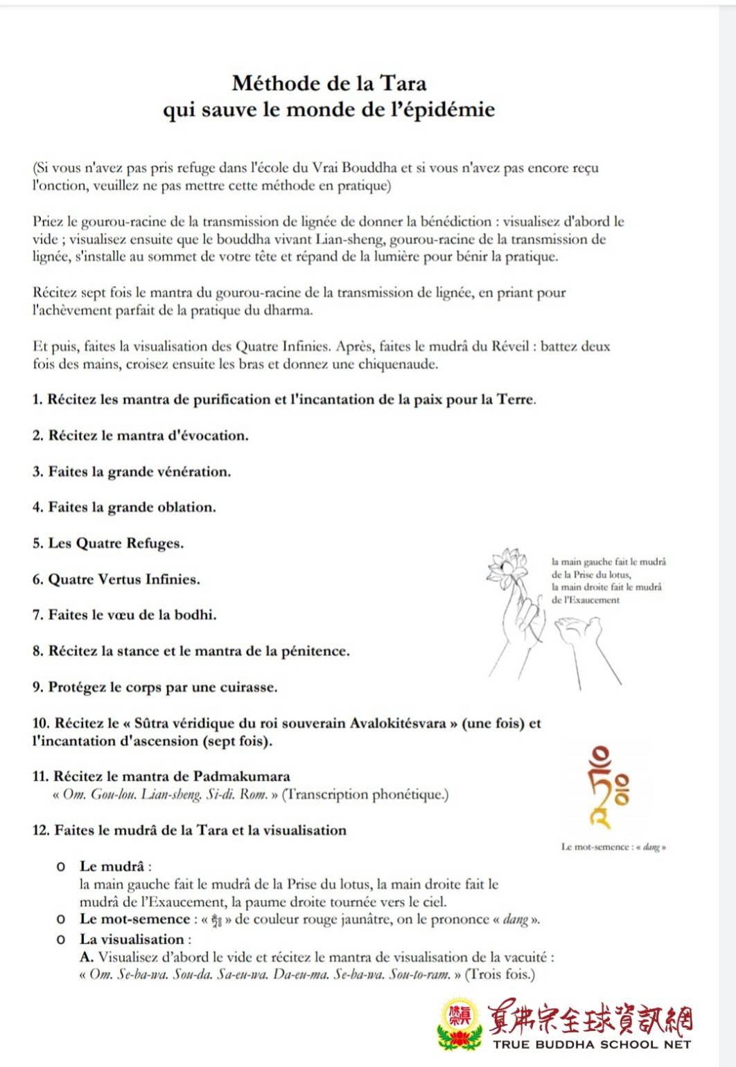 除瘟疫度母念誦法 法文版 儀軌
