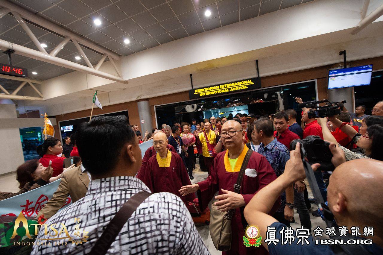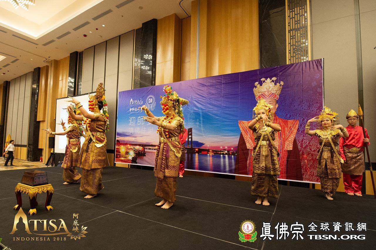 2018年12月11日印尼巨港聖輪雷藏寺迎師宴 【TBSN報導】 2018年12月11日,聖尊一行人抵達印尼巨港。在機場,有聖華堂及聖輪雷藏寺同門來迎師。當晚聖輪雷藏寺設宴歡迎聖尊。除了傳統歌舞,有兩位師姐獻唱了《感恩師尊》及《You Raise me up》,歌聲嘹亮動聽。 聖輪雷藏寺致詞感恩師尊到來印尼傳下阿底峽尊者法,也感謝主辦單位特別安排此行程,讓聖輪雷藏寺也有機會供養聖尊。 聖尊亦以虎虎生威的金剛棍加持弟子們,晚宴在愉悅的氣氛中結束。