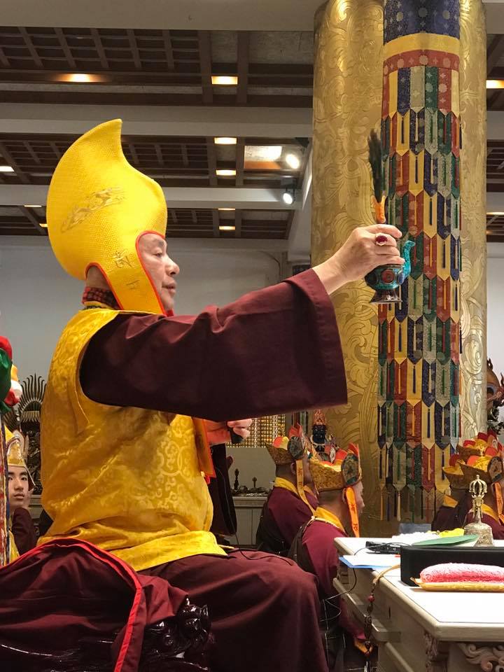 法會前,中觀堂「大幻化網金剛不共大法」請法儀式,由蓮悅上師丶蓮妙上師帶領法師同門代表敬獻哈達及供養以表最高敬意。