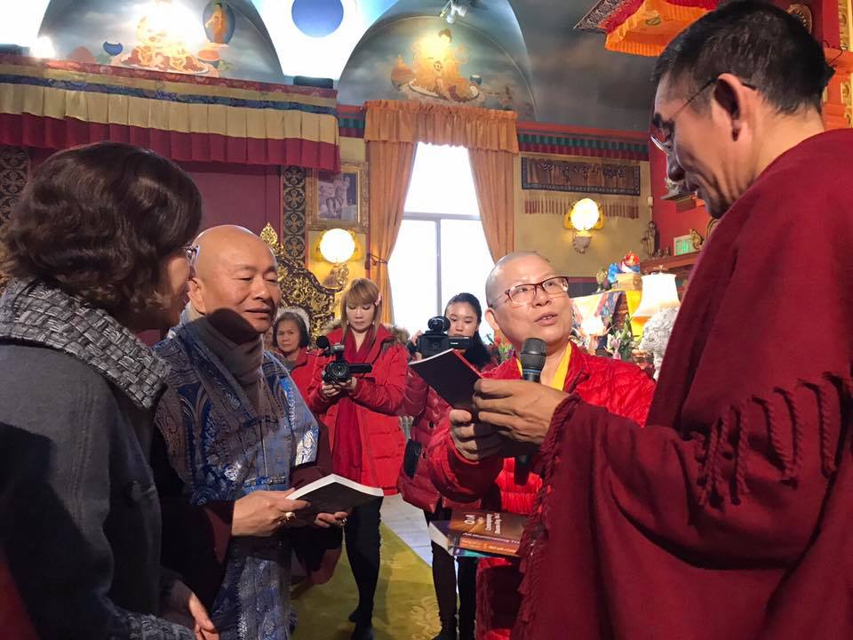 Tulku Yeshi仁波切代表薩迦寺致歡迎詞,他表示對於蓮生活佛前來薩迦寺瞻禮達青法王,感到很榮幸,達青法王是第一位來美國傳授藏傳密法的人。並說,他知道蓮生活佛曾經得到薩迦寺上師傳授密法。