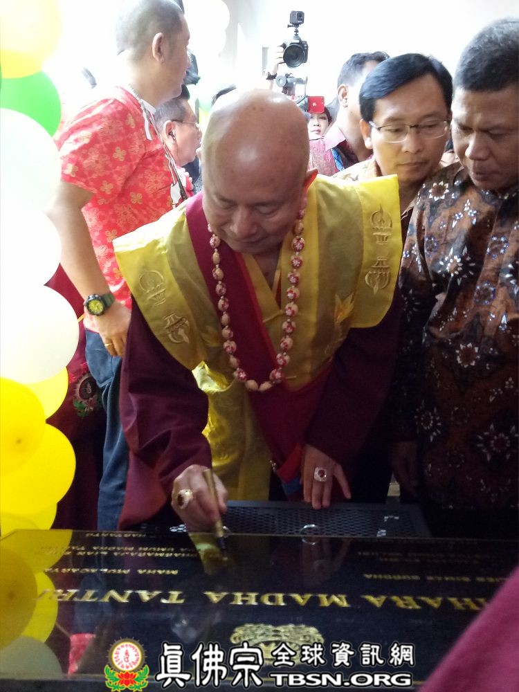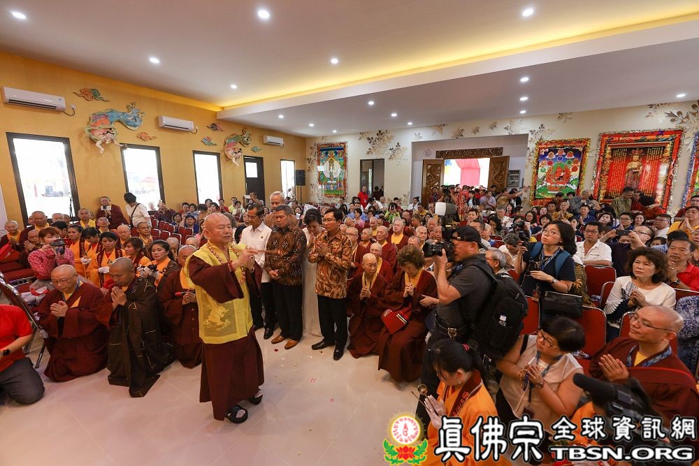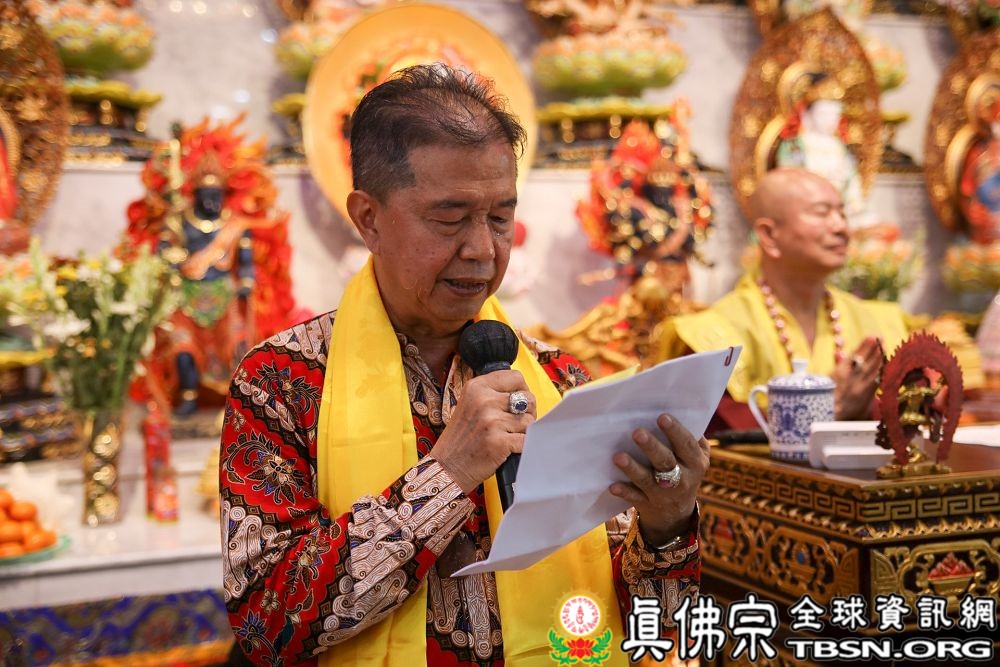 他感恩今天大家能夠相聚在此,非常感謝大家,特別感恩師尊。今天是非常具有歷史性的一刻,因為是西雅加達第一座雷藏寺開光。他感謝大家護持,請佛住世,永轉法輪。