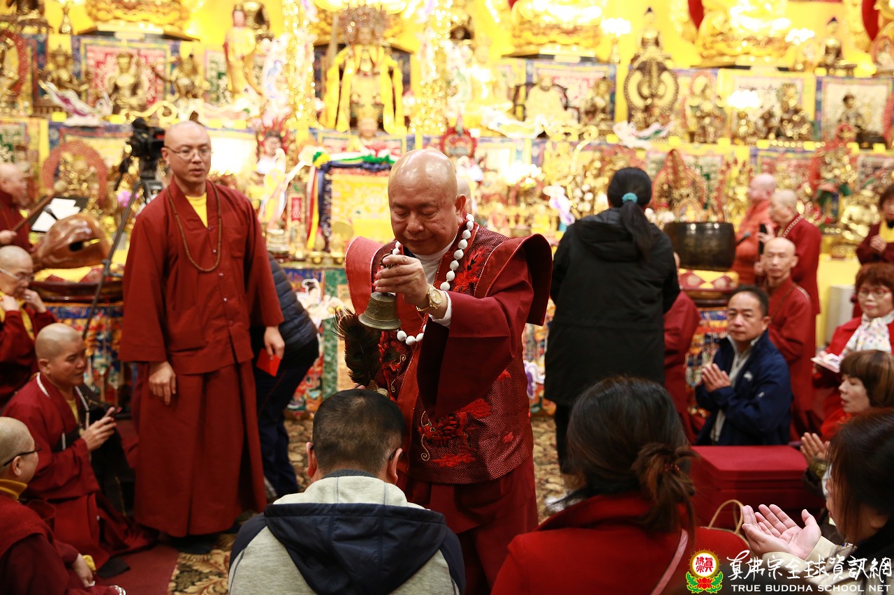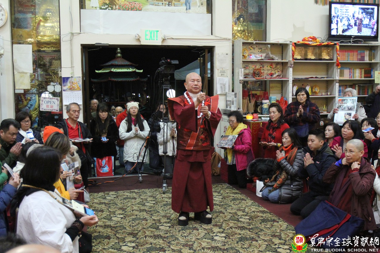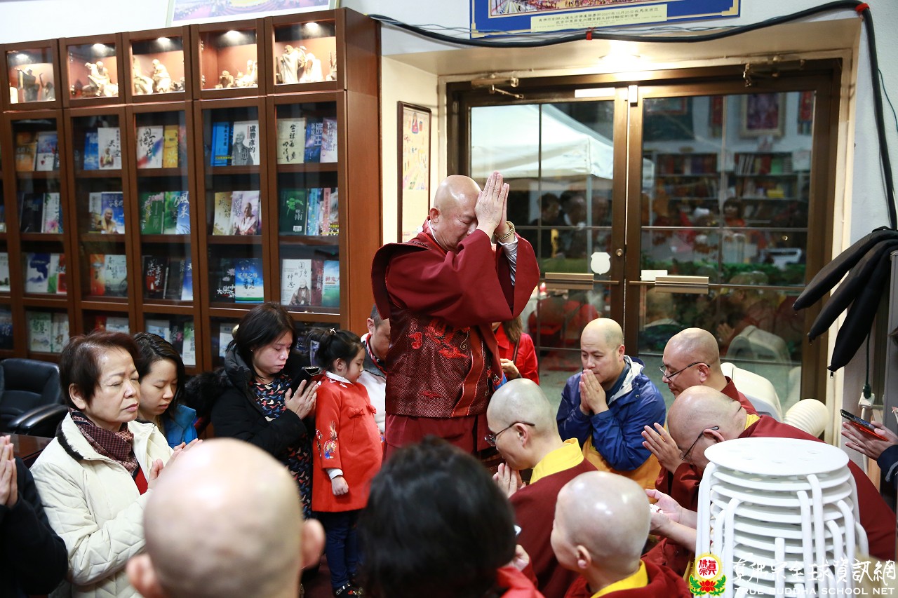 天氣雖然非常寒冷,但弟子們護持聖尊、虔心求法的熱情不減,許多同門仍從世界各地遠來祖廟朝聖。今晚西雅圖雷藏寺的同修主尊是阿彌陀佛。在同修開始前,首先舉行了西雅圖雷藏寺第三十五屆法師研習班結業儀式,本次法師研習班的學員是蓮誰法師、蓮璃法師、蓮唔法師、蓮梁法師、蓮闐法師、蓮卿法師、蓮褐法師、蓮遠法師、蓮唯法師,共九位出家法師,由聖尊頒發結業證書,並且與聖尊合影留念。在眾人的見證之下,隆重的結業儀式禮成,恭喜每一位完成法師研習班的學員,將來都能秉持聖尊的教導,自利利他、自度度他。