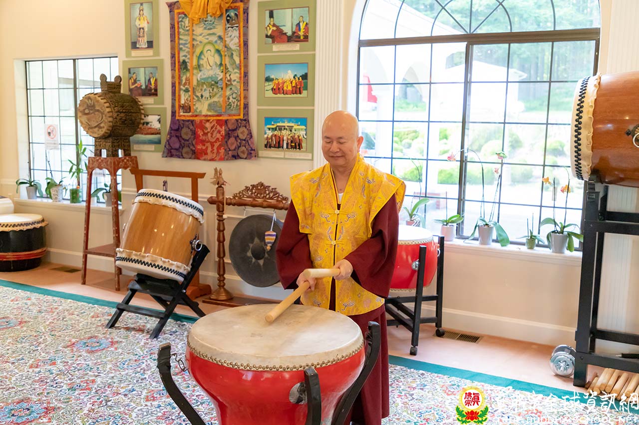 法會後的餘興表演節目,有清歌妙舞夾雜爆笑的笑話;唱歌情感十分投入的師兄,每一首歌都唱得可圈可點,平時正職是程式設計師,但最後被觀眾建議乾脆改行當歌手。一位自稱能模仿鄧麗君和蔡琴的工作人員,一首「甜蜜蜜」也讓師尊師母聽後笑咪咪。最精彩的片段莫過於師尊打鼓加持大眾;第一回用的鼓,師尊才打了幾下就發現鼓皮似乎鬆弛,發出破鼓的聲音。工作人員連忙換新鼓,這回師尊十分專注的鳴鼓達數分鐘之久,鼓音有起承轉合的節奏,扣人心弦,有如上演「擊鼓進軍」至「鳴金收兵」的戲碼,節奏震撼人心;初時鼓聲如輕風吹拂,接著風起雲湧,排山倒海的鼓聲,後時如雷鳴戰鼓,撼動山河,最後班師回朝,天下太平。師尊說祂從沒學過鼓,但很喜歡聽鼓聲,可精進振奮人心。師尊從太鼓、獅鼓、廟會鼓中,混合不同鼓聲元素,編出一套自己的曲目。眾人聞後皆讚嘆師尊的鼓聲,富有深層的藝術表達,必俱宿緣方有如此天分。