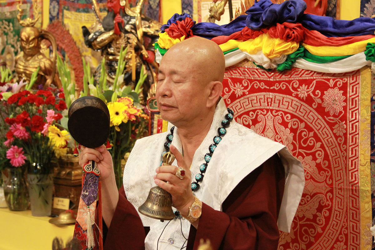 【釋蓮店上師 報導】2016年7月30日在西雅圖雷藏寺主持「蓮花童子本尊法」。同修後,蓮生活佛首先談到以前是沒有聽過「蓮花童子」,很多佛教的人也都不知道有「蓮花童子」;「童子」也是「大士」、「菩薩」的意思。「童子」之意,代表沒有邪念,很純潔之意。
