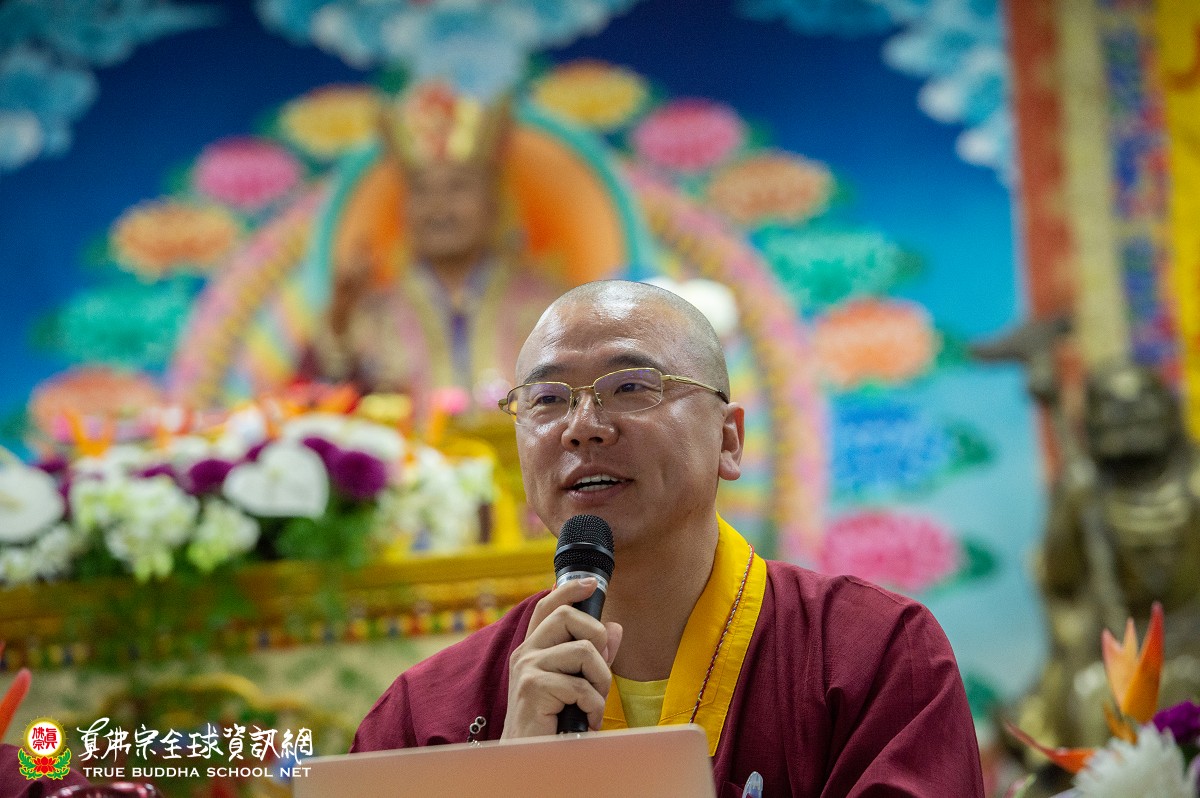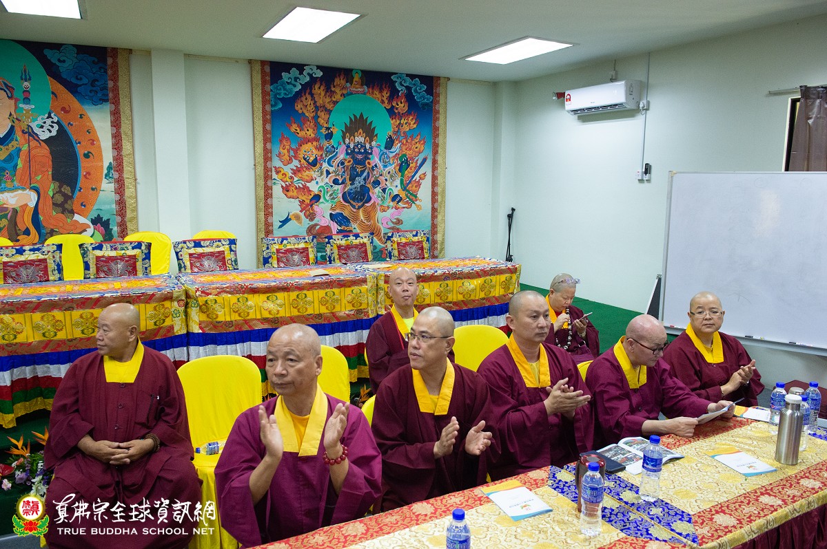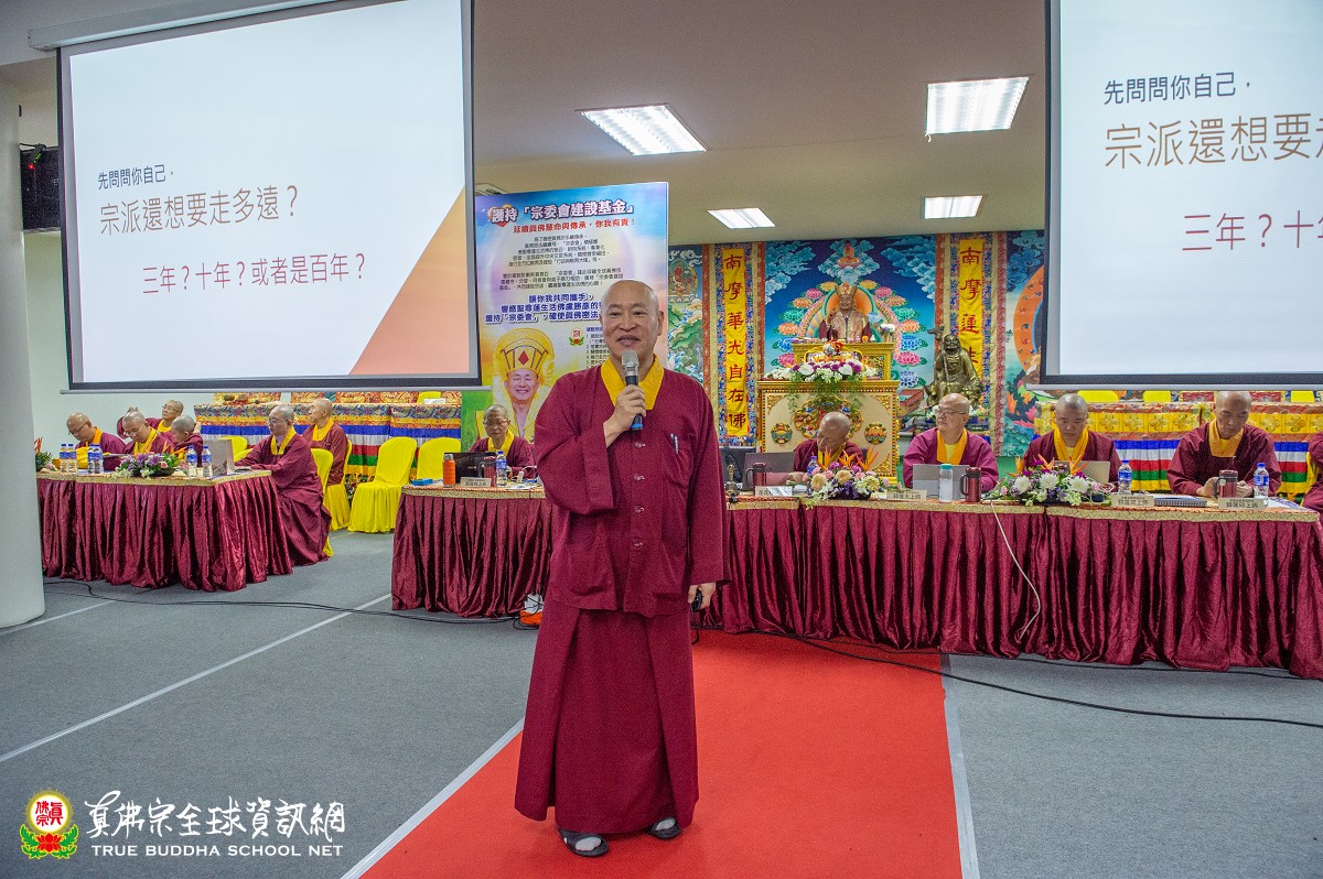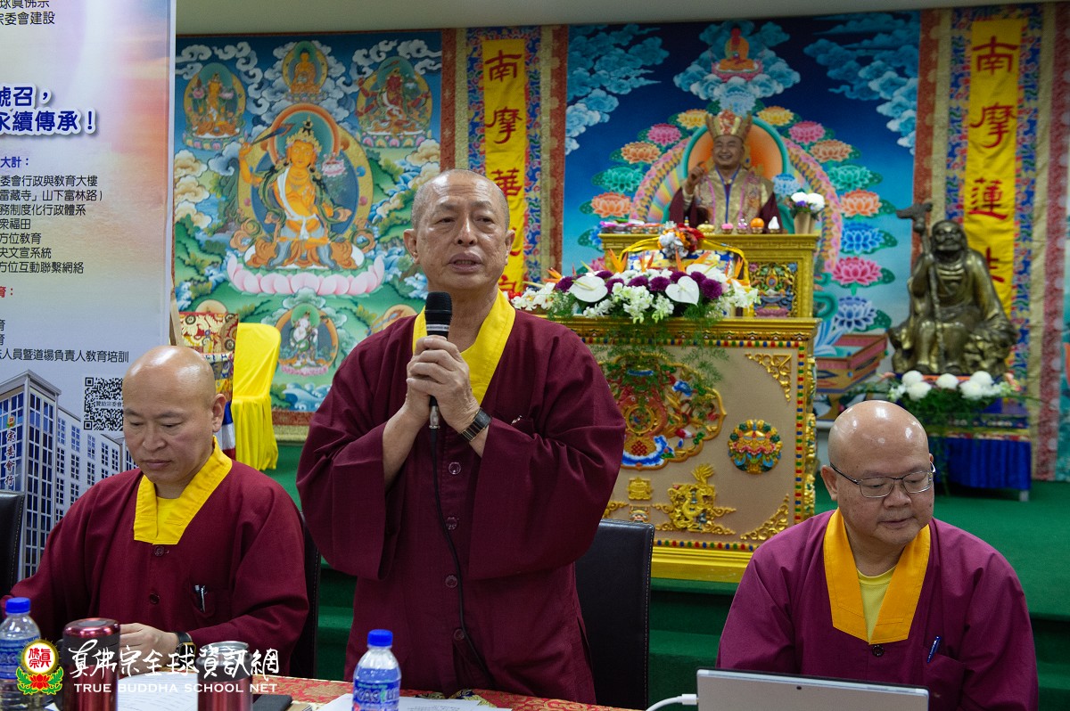 上師期望這些話可以觸動每個人的心。另外,蓮僧上師要蓋西雅圖行政中心。上師期望往後鼓勵所有宗派的各級弘法人員一定要來,要實修實證。他也特別感恩處長們,往往半夜也一起開會、不分日夜的開會,宗委會與在座大家是一體的,宗派一定可以永續傳承下去。