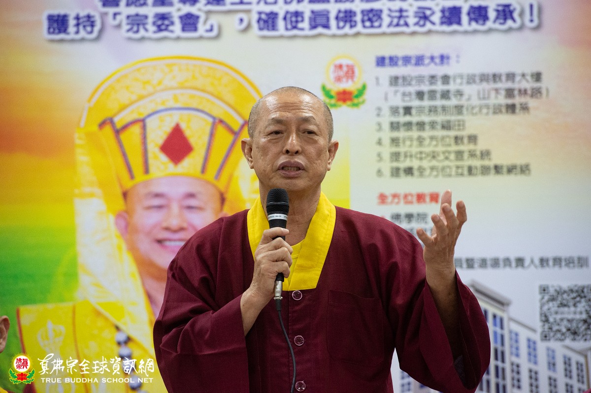 蓮訶上師全方位的教育非常好,大家一定要學習,就從你我做起,力行呼喚全世界。舉辦各級弘法人員與道場負責人研習班是,為了推動法輪讓真佛密法永續傳承下去。所以領導人一定要來,要有正知正見、要拿起這個旗子,讓人人都能成就。而系統化制度化,蓮僧上師的責任很大,宗務會要尋才、用才。