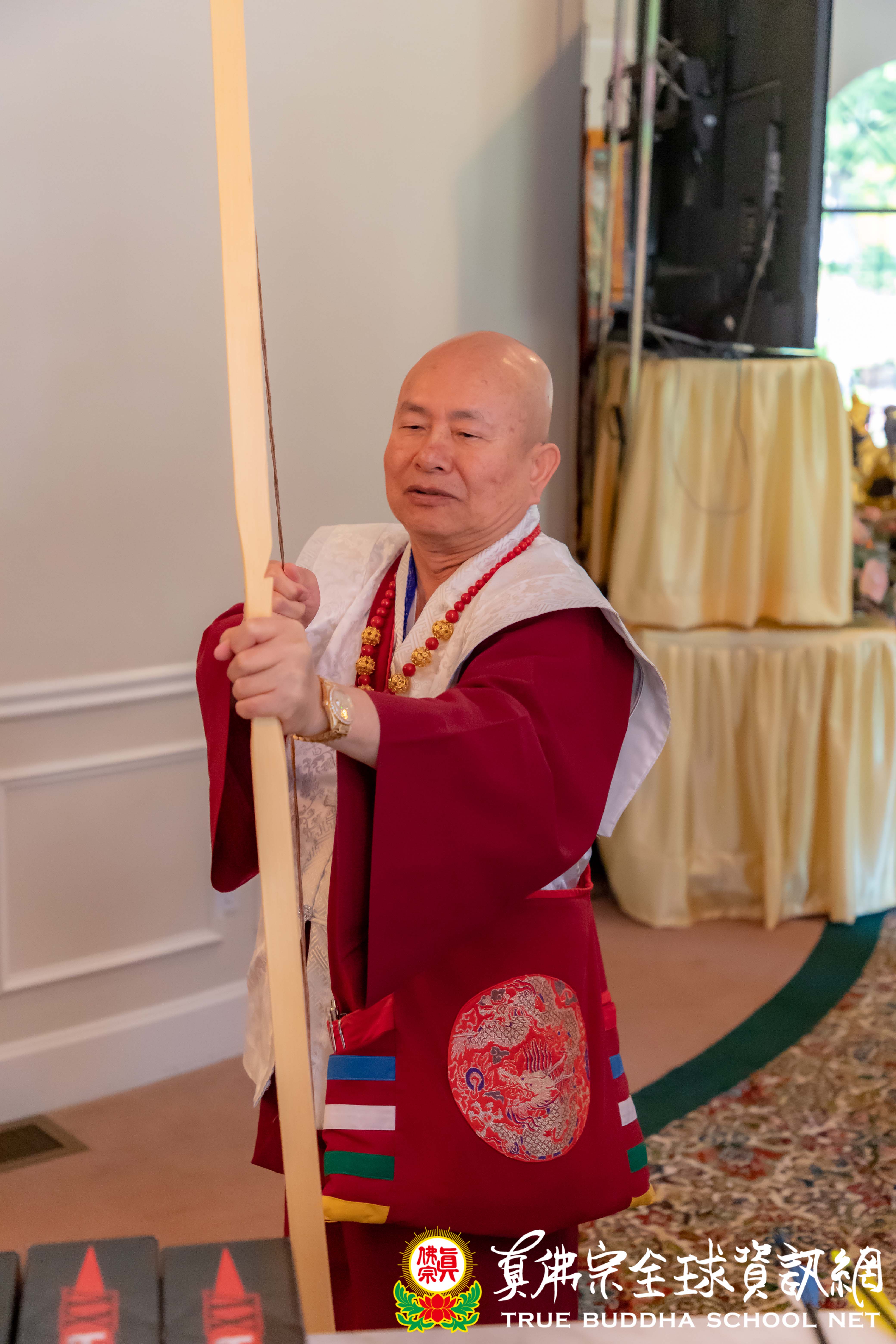 下午三時,護摩法會開始,原本陰晴不定的天氣,在師尊步出大殿門口的那一刻,霎時大日光芒遍照,金色的陽光照在師尊行經的道上,迎師的傘蓋被乍現的大日光芒照耀而閃爍著黃金般的顏色。伴隨著有如從天而降的萬道佛光,師尊莊嚴的步入護摩寶殿主壇今日的蓮花童子護摩法會。在熊熊的護摩火中,師尊召請護摩主尊降臨壇場,慈悲演化手印,無論是息災、敬愛、增益、超渡皆得根本上師及主尊加持圓滿。師尊妙語如珠的佛法開示,以深入淺出的方式,能讓更多的人更容易領受佛法的精妙奧義。