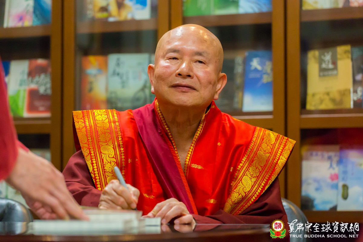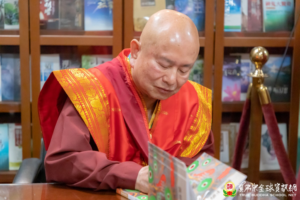 法喜充滿的開示結束後,聖尊加持大悲咒水和為佛像開光,聖尊亦慈悲以拂塵為大家加持賜福。接著,聖尊還為大眾簽名剛出版的新書——第279冊「孤燈下的告白」。大家踴躍請購珍貴的佛書,聖尊的文集就像聚寶盆一樣,當中有取之不盡、用之不竭的佛法寶藏,是值得珍藏傳家的好書。簽書會結束後,廟外秋涼的夜風,帶來絲絲冬季的味道,大家心裏卻洋溢著溫馨的孺慕之情,敬仰師尊浩瀚的無上佛慧與圓滿的佛果成就。