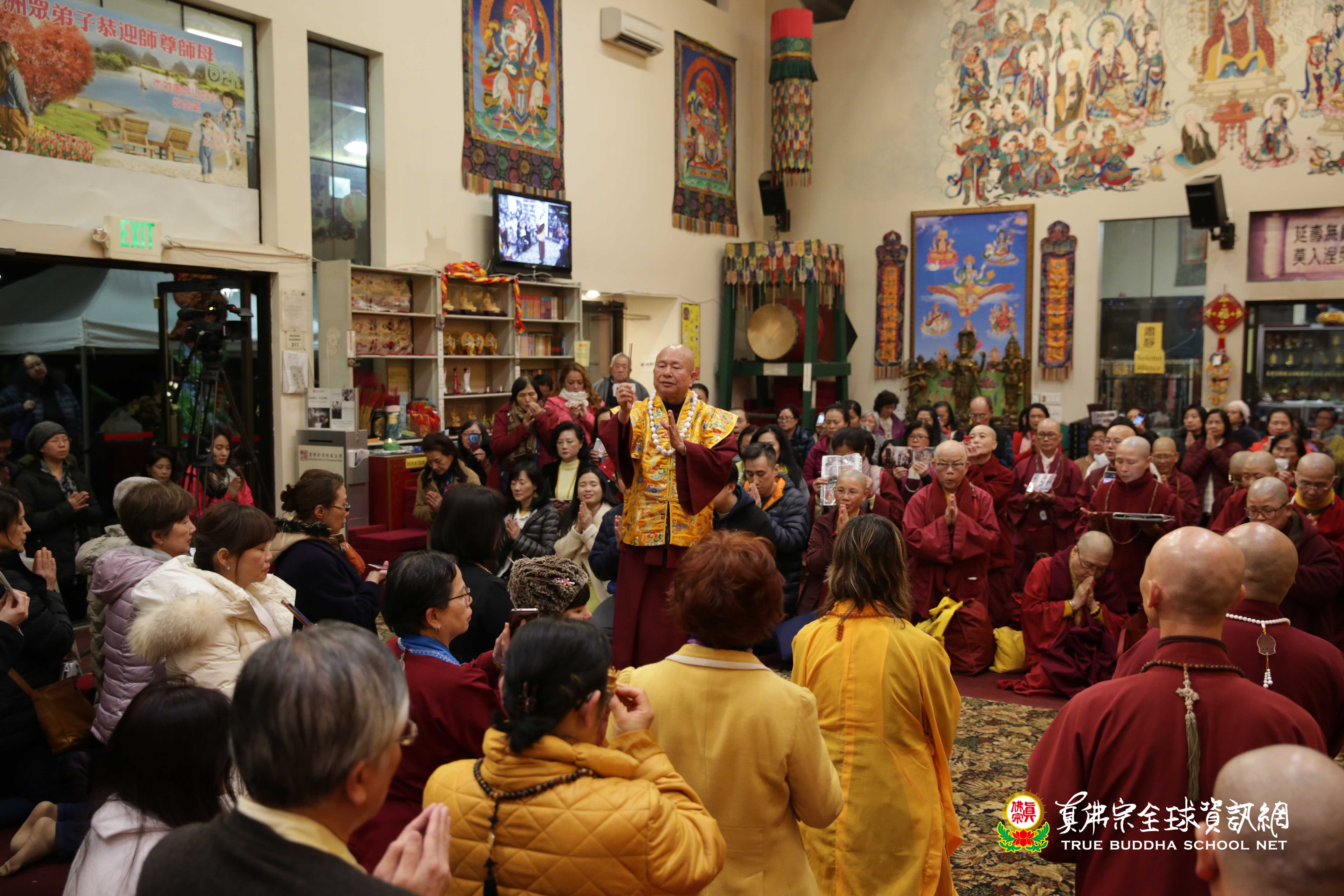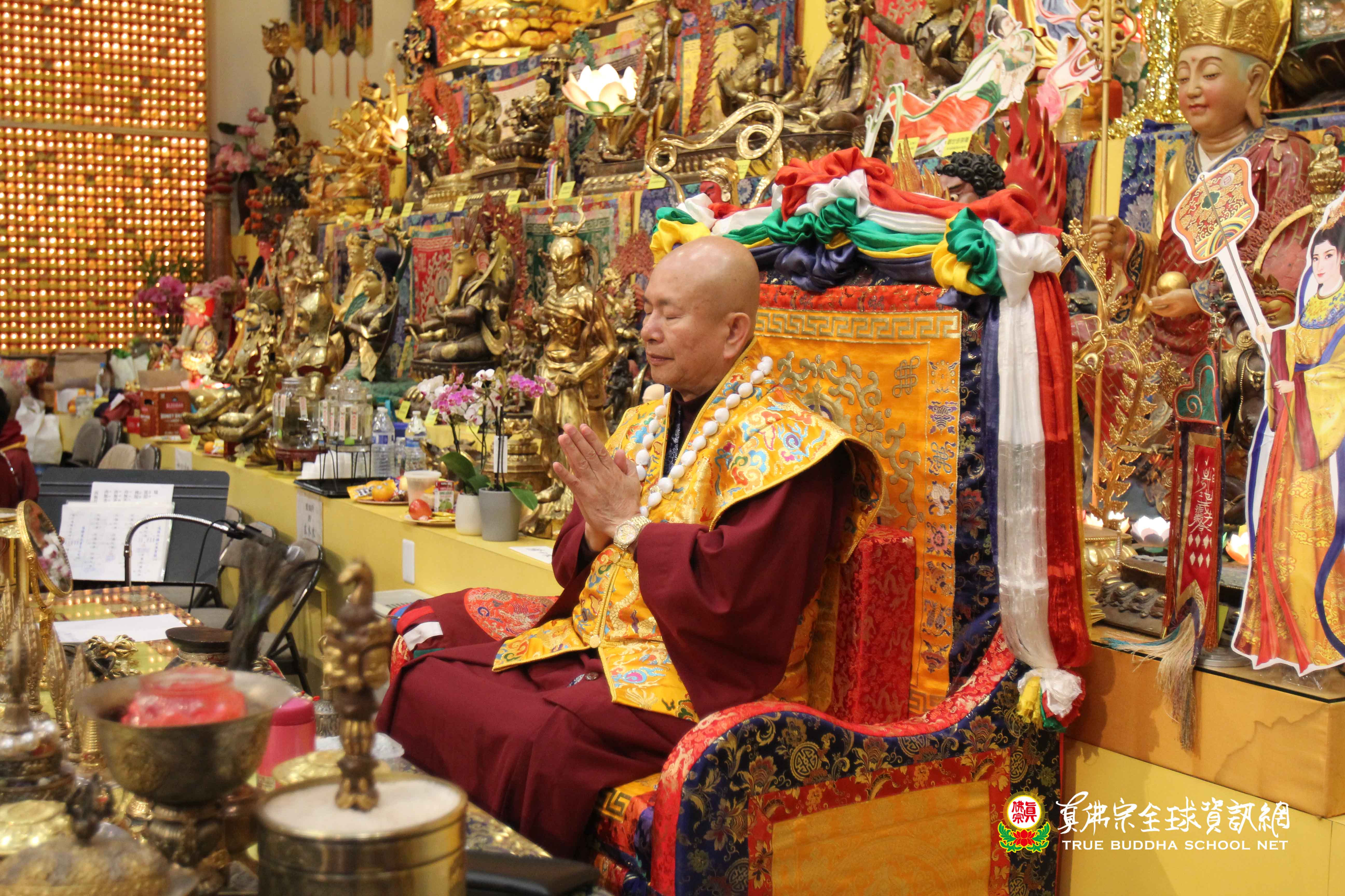 同修後,聖尊讚揚當晚的貴賓們,首先提到Teresa師姐無論是在宗委會、盧勝彥佈施基金會,或其它真佛宗的道場,她都是義務發心幫忙會計事務方面的問題,她有願力的發心幫忙,聖尊讚揚她有地藏王菩薩的精神。接著,聖尊提到法國大弘出版社范秀姬師姐,她翻譯聖尊文集成為法文,從校稿、設計封面到印刷出版,將譯好的書給圖書館或到大學,再到行銷,全部都是由她一手包辦。現在,還自己籌備要獨資在法國建立真佛宗道場,聖尊讚嘆道,這個就是地藏王菩薩的精神。聖尊說道,我們這裡就有現代的地藏王菩薩,他們發的願力都有地藏精神,他們發了願一定把真佛宗弘揚出去。