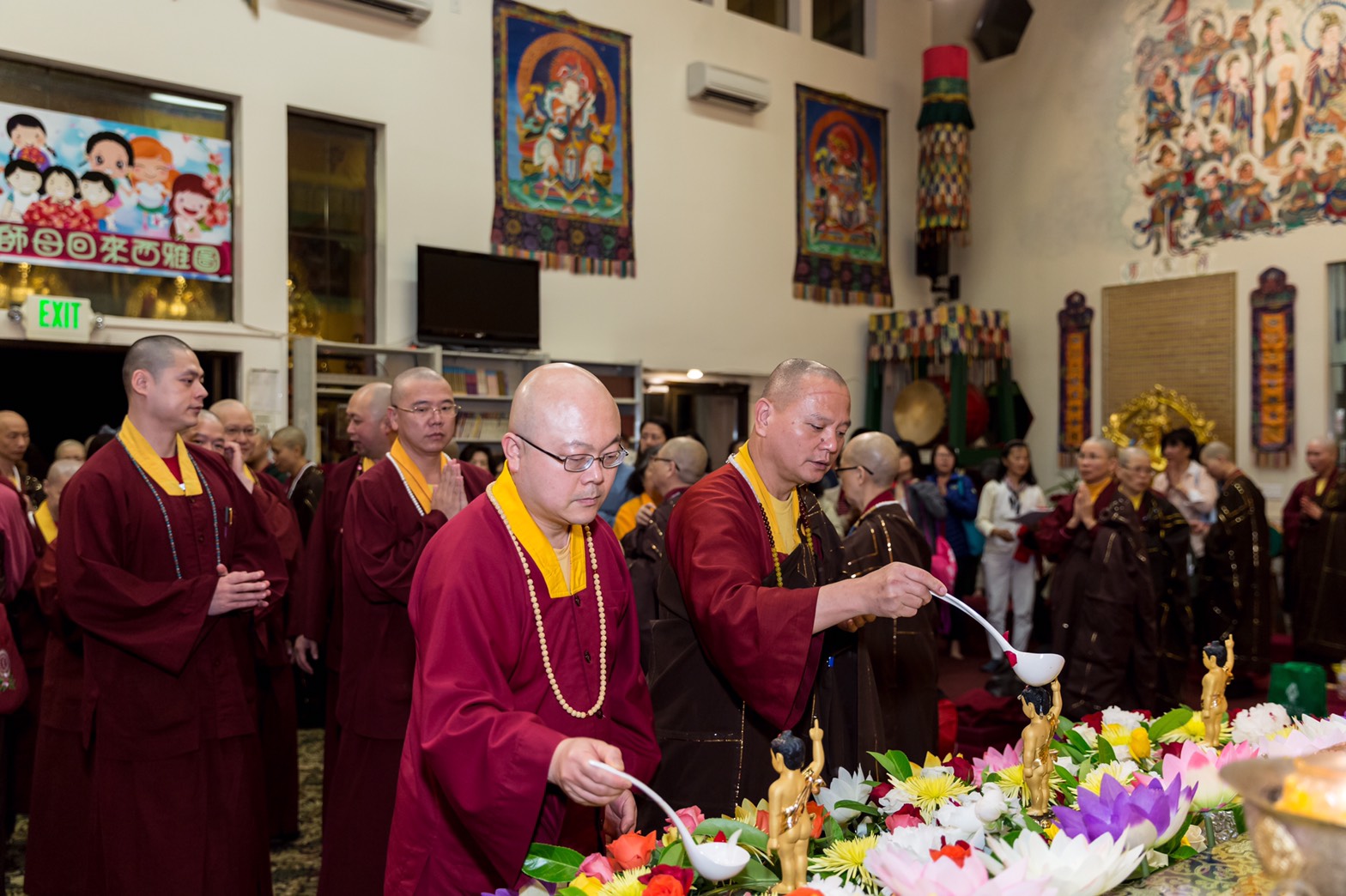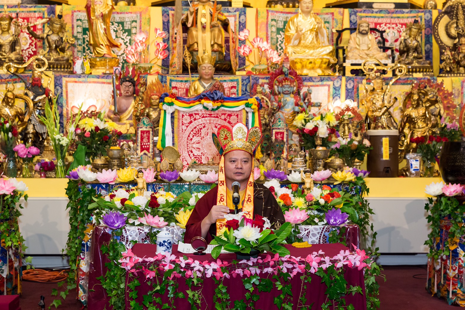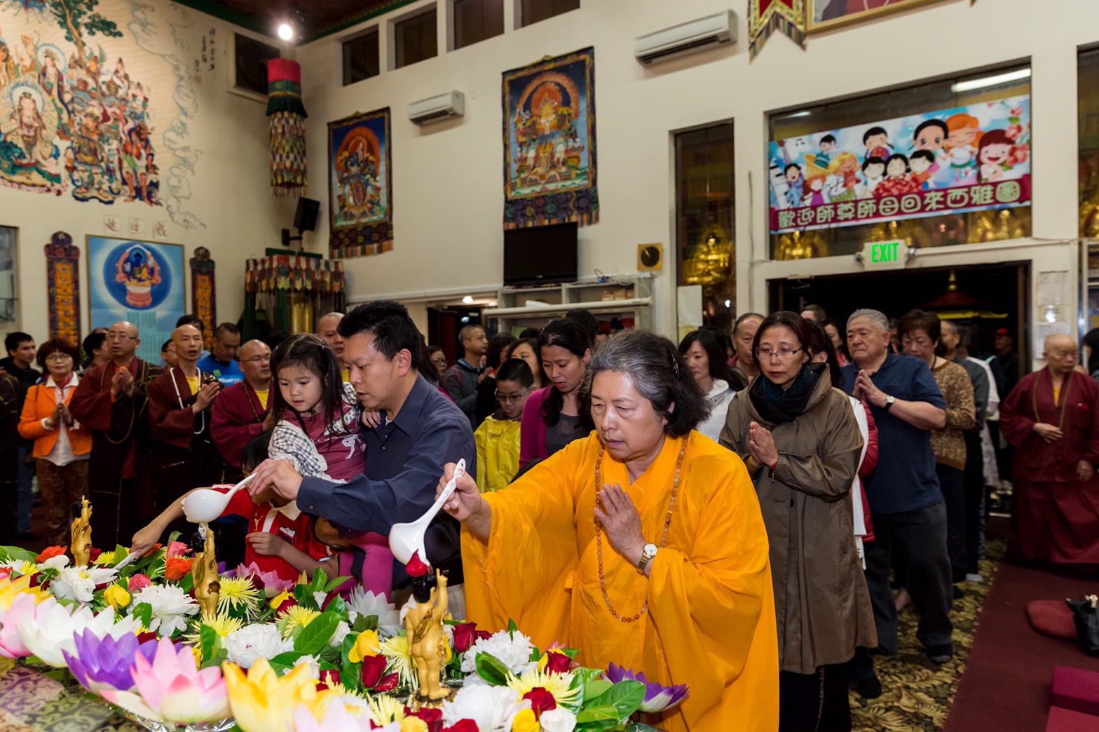 西雅圖雷藏寺於五月十四日星期六晚上八時舉辦浴佛大典準時進行,由釋蓮花德輝上師帶領同修釋迦牟尼佛本尊法,並於同修中加誦「浴佛功德經」;釋蓮旺上師、釋蓮潔上師、釋蓮悅上師、釋蓮印上師、釋蓮栽上師、釋蓮訶上師、釋蓮者上師、釋蓮晴上師、釋蓮萬上師、釋蓮伃上師、釋蓮友上師、釋蓮喜上師、釋蓮彥上師、釋蓮花璧珍上師、蓮花春蓮教授師出席護持。與會貴賓:廖東周大使夫人Judy師姐、周慧芳律師、周衡醫師、宗委會會計師Teresa師姐伉儷,來自各地參加的同門善信人數眾多,雷藏寺座無虛席。