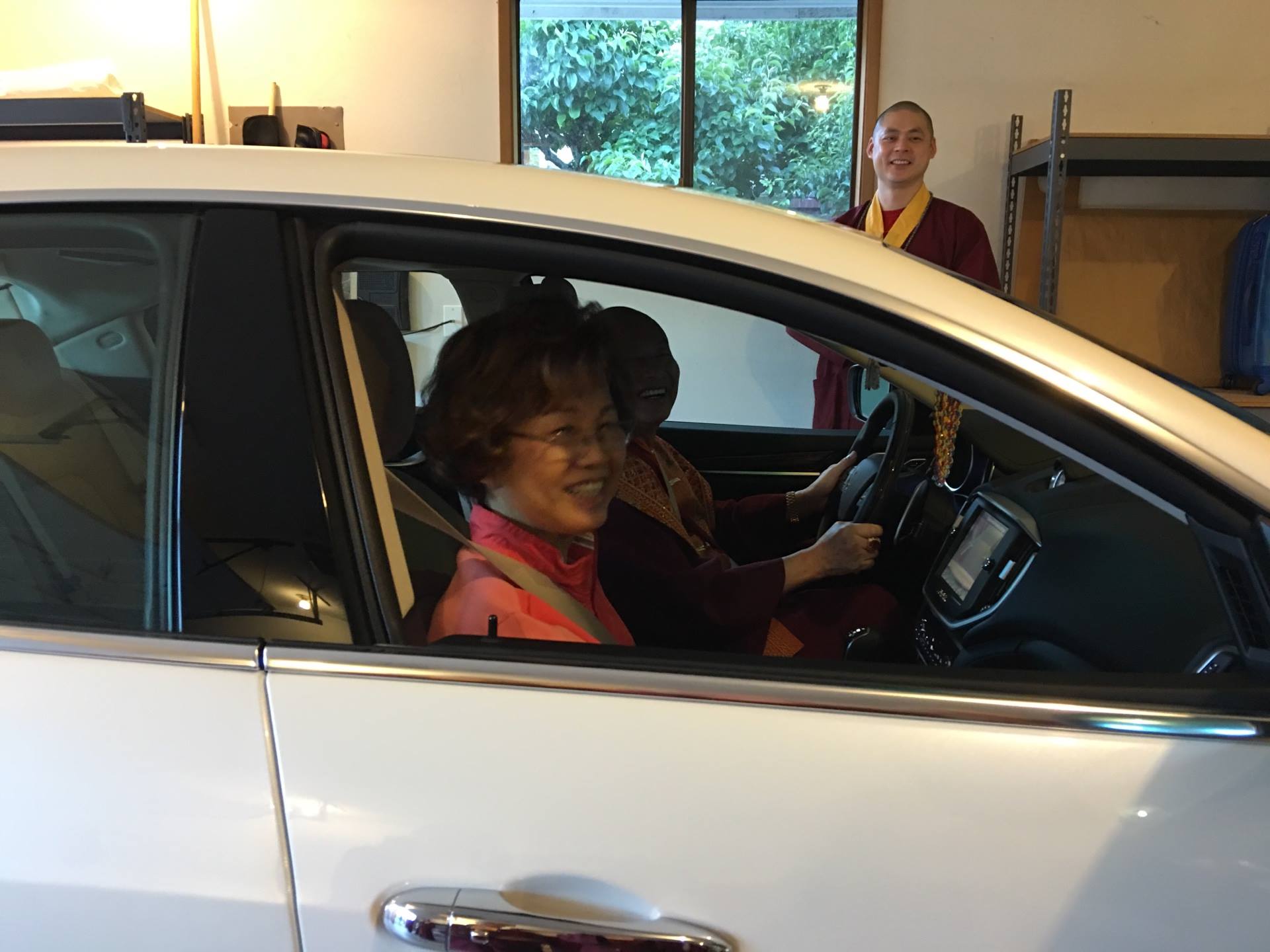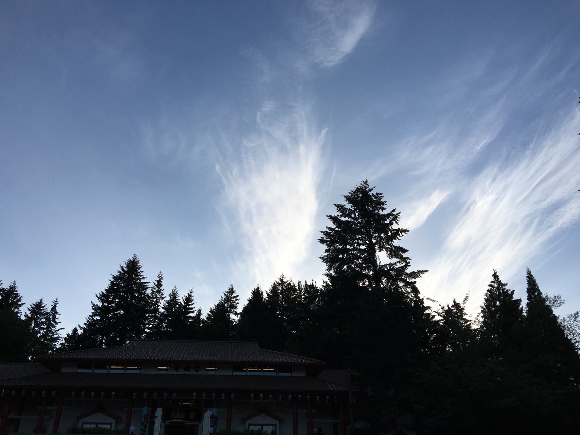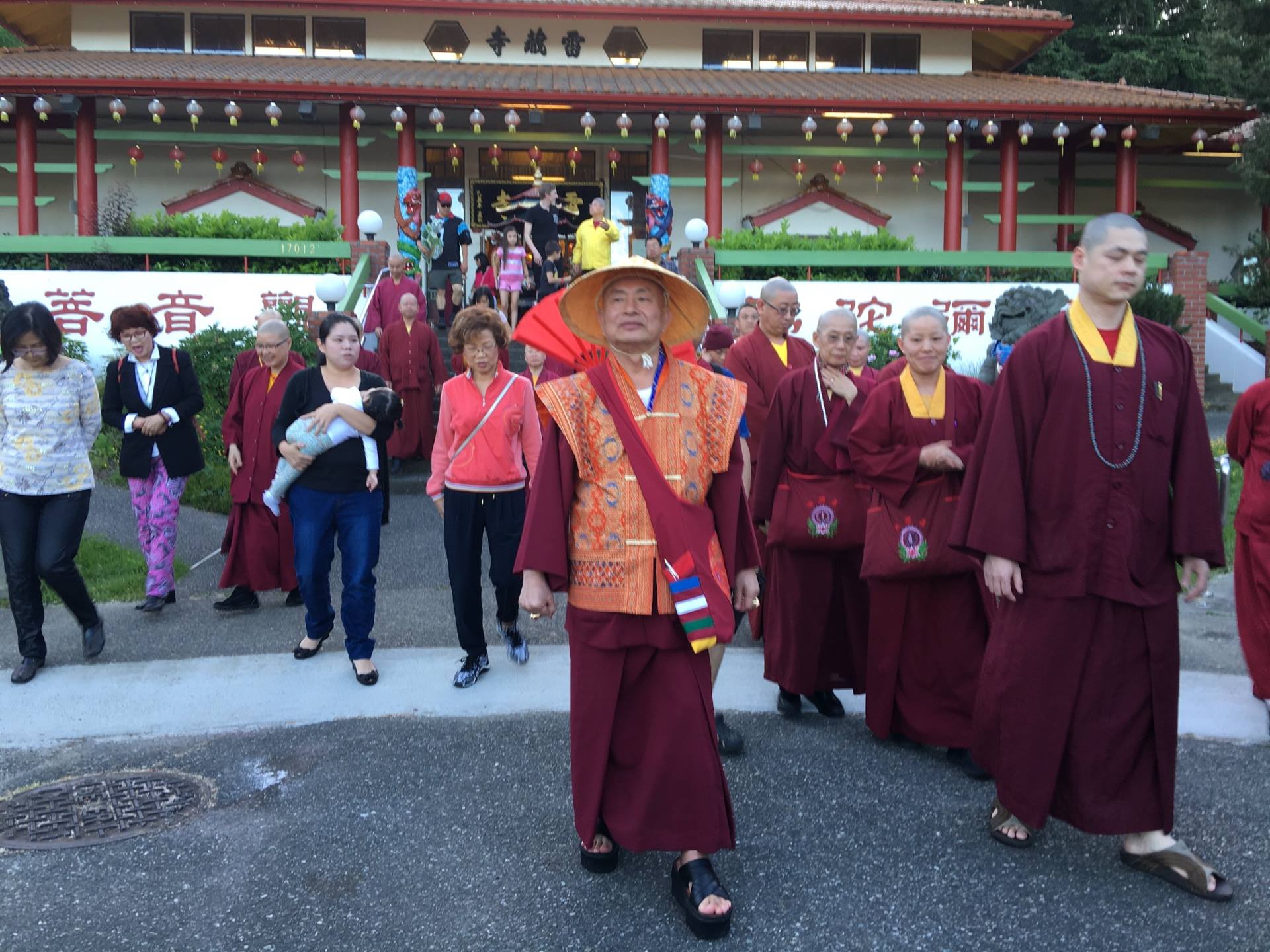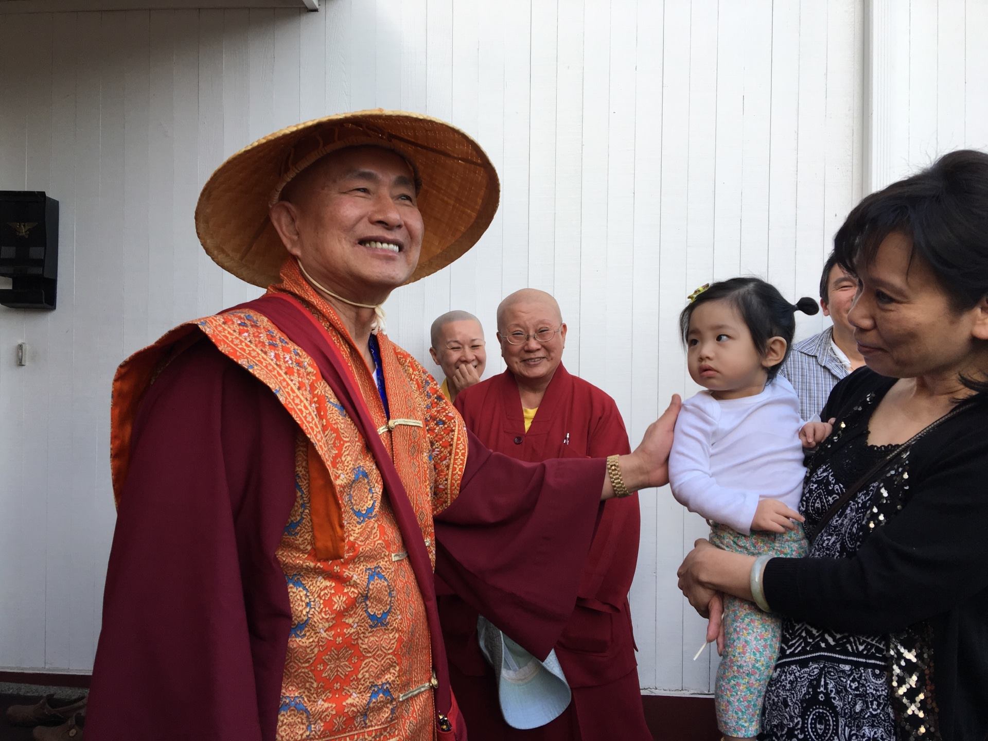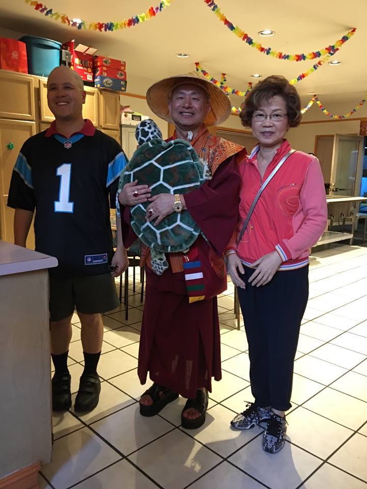 午餐後,師尊、師母一派休閒和輕鬆的與大家話家常,師尊還頻頻仰望藍澄澄的天空,說著︰ 這是只有在西雅圖才能看得到如此清爽透徹的藍啊 !! 晚餐時分,師尊經過了一個下午的休憩,精神滿滿的步出密苑,到雷藏寺大飯店用餐,師母還特別說;這是師尊自出院後,吃的最多的一天呢 !! 飯後,師尊、師母一起到祖廟禮佛,再與弟子們在廟前的廣場散散步,與大家說說笑笑的,時不時都可以聽到師尊開懷的笑聲,神情愉悅極了 !!師尊日後的健康和心情,祖廟上下皆齊心協力的共同把關。接下來的日子,我們也會盡量讓全球的弟子,分享師尊、師母日常生活精彩的點滴,讓我們大家的心也能同步的『與佛同在』。