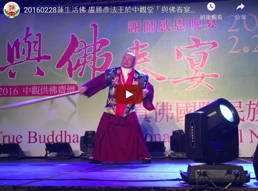 2016年2月28日 中觀堂「與佛春宴」 蓮生活佛 盧勝彥法王演化「金剛棍」,震攝全場! 影片連結:https://youtu.be/GlRBjI4kmqM 蓮香師母精彩的獨舞與雙人舞演出,令人驚艷! 影片連結:https://youtu.be/yazEzTWNlMc 香香隊長蓮香師母「陽光舞供團」精彩曼妙的演出! 影片連結:https://youtu.be/zz52HC_sTag