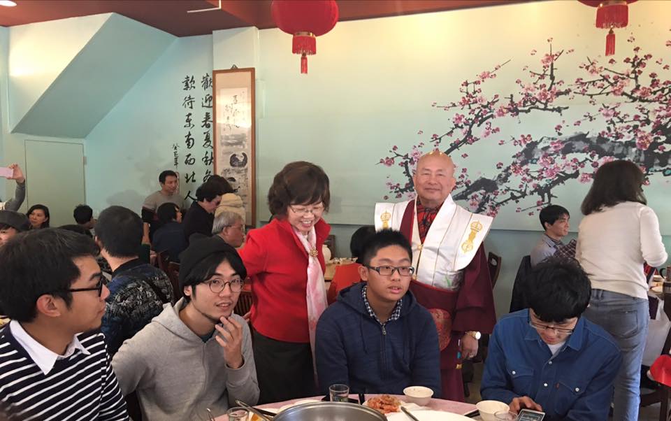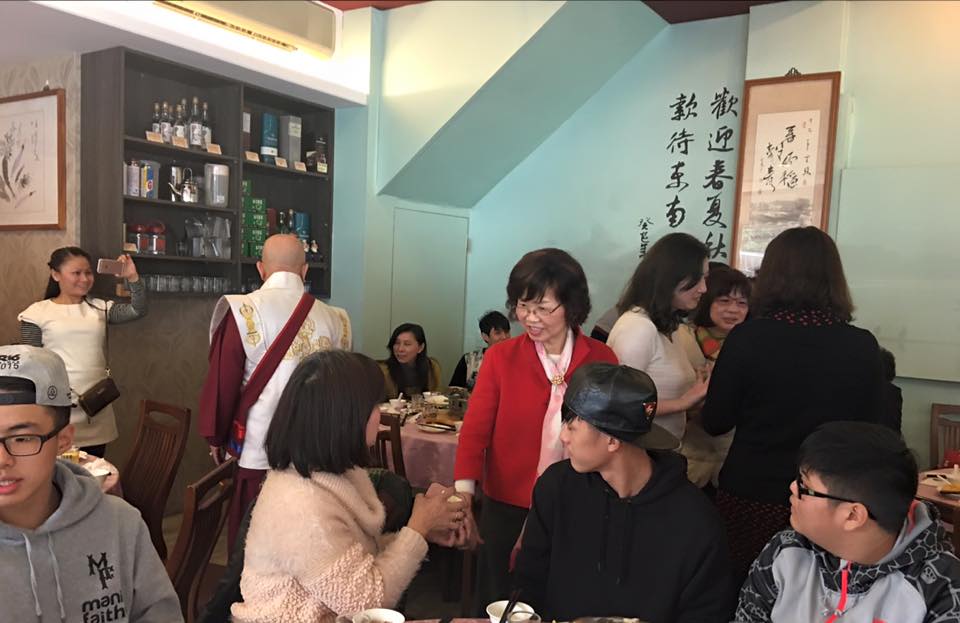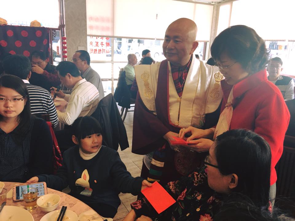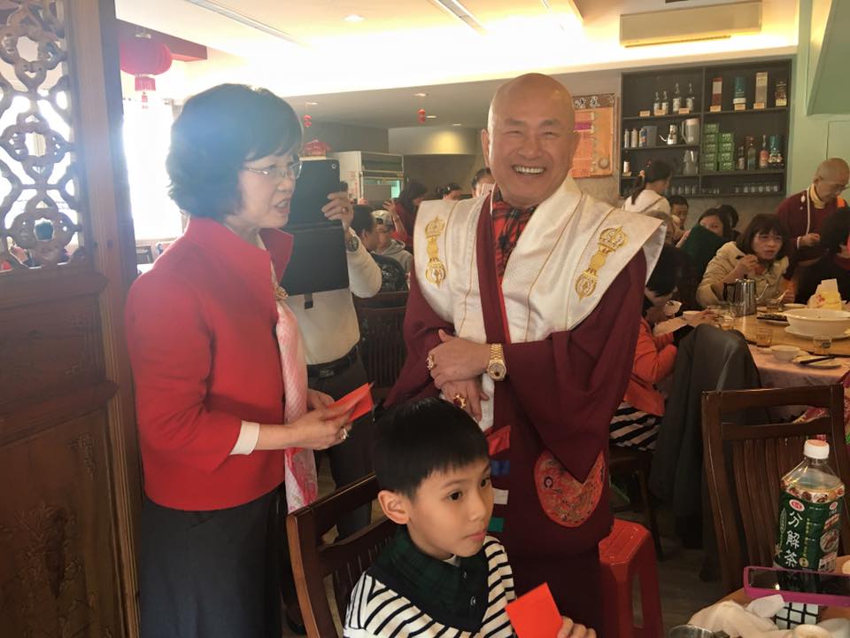 2月9日師尊、師母中午與師母娘家親友五十多人共聚一堂;師母說,今天是一年一次和這麼多的家人親友聚在一起的日子;平時大家各有事業,但由於家族的團結性,每到這一天,大家都一定放下身邊事務,參加「師母回娘家」的聚會。