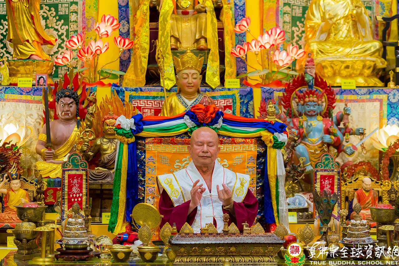 熱烈掌聲中,師尊坐上了法王座,帶領現場與網路上的所有弟子們,同修了一壇莊嚴肅穆的蓮花童子本尊法。