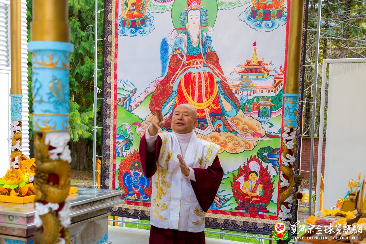 2020年11月21日蓮生法王盧勝彥於美國彩虹雷藏寺主持瑤池金母護摩法會。法王首先預告,下星期天將是蓮花童子的法會。蓮花童子,既是項光童子,也是化生童子,本地既是阿彌陀佛,而盧師尊也就是蓮花童子的化生,真佛宗就是蓮花童子創立的宗派。
