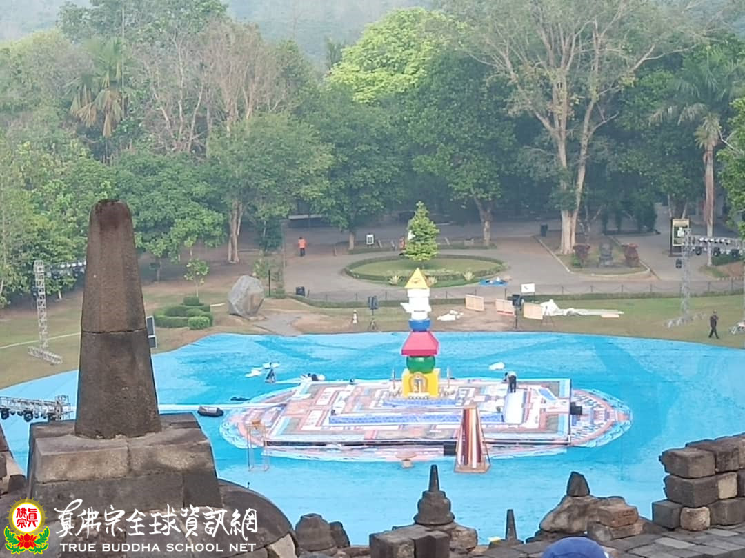 自婆羅浮屠佛塔遙望,真佛宗時輪金剛曼陀羅已完成。真佛宗根本傳承上師蓮生法王聖尊傳下如此珍貴之時輪金剛大法,讓受灌頂的真佛弟子們得以在七世之內成佛,實乃多世修得的福緣!我們感恩根本上師所賜之福份,讓我們得以在印尼婆羅浮屠佛塔聖地,建立時輪金剛曼陀羅,宣揚蓮生法王之偉大成就,與大眾結緣,廣度有緣眾生!
