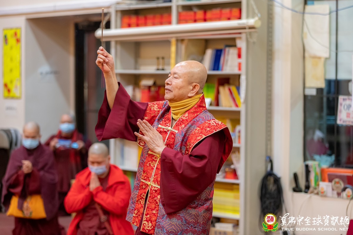 在聽聞聖尊寶貴的法語開示後,聖尊賜授皈依灌頂、加持大悲咒水和為佛像開光,及慈悲為每位善信拂塵加持。