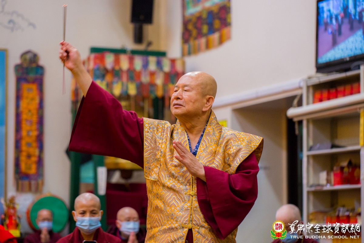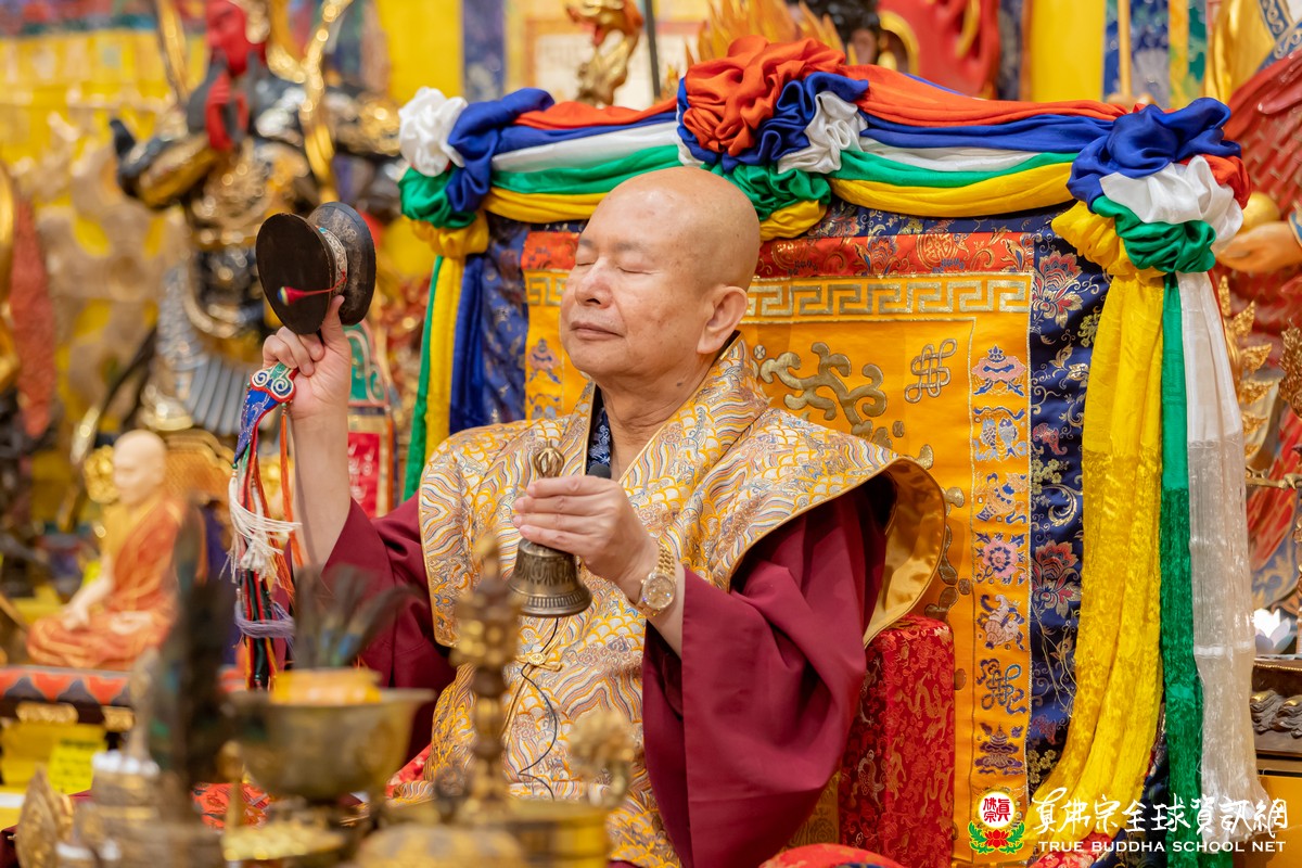 5月29日星期六晚上八點,同修完地藏王菩薩法之後,師尊祈求大願地藏王菩薩以光明珠的光明,普照人間,讓瘟疫退散;請地藏王菩薩以其錫杖及五佛,接引有緣中陰往生清淨佛國;請地藏王菩薩以諦聽之力,見狀救苦;請地藏王菩薩以其大願力,生生世世救度衆生;請地藏王菩薩加持眞佛宗弟子及衆生,身體健康、萬事如意、逢凶化吉、道心堅固。頭頂五佛,佛光普照,右手錫杖,震開地獄之門,左手光明珠,照耀十法界,座下諦聽,見狀救苦。讓瘟疫退散,新冠病毒退散,讓需要水的地方有水,讓農作物盛產,讓人民幸福。