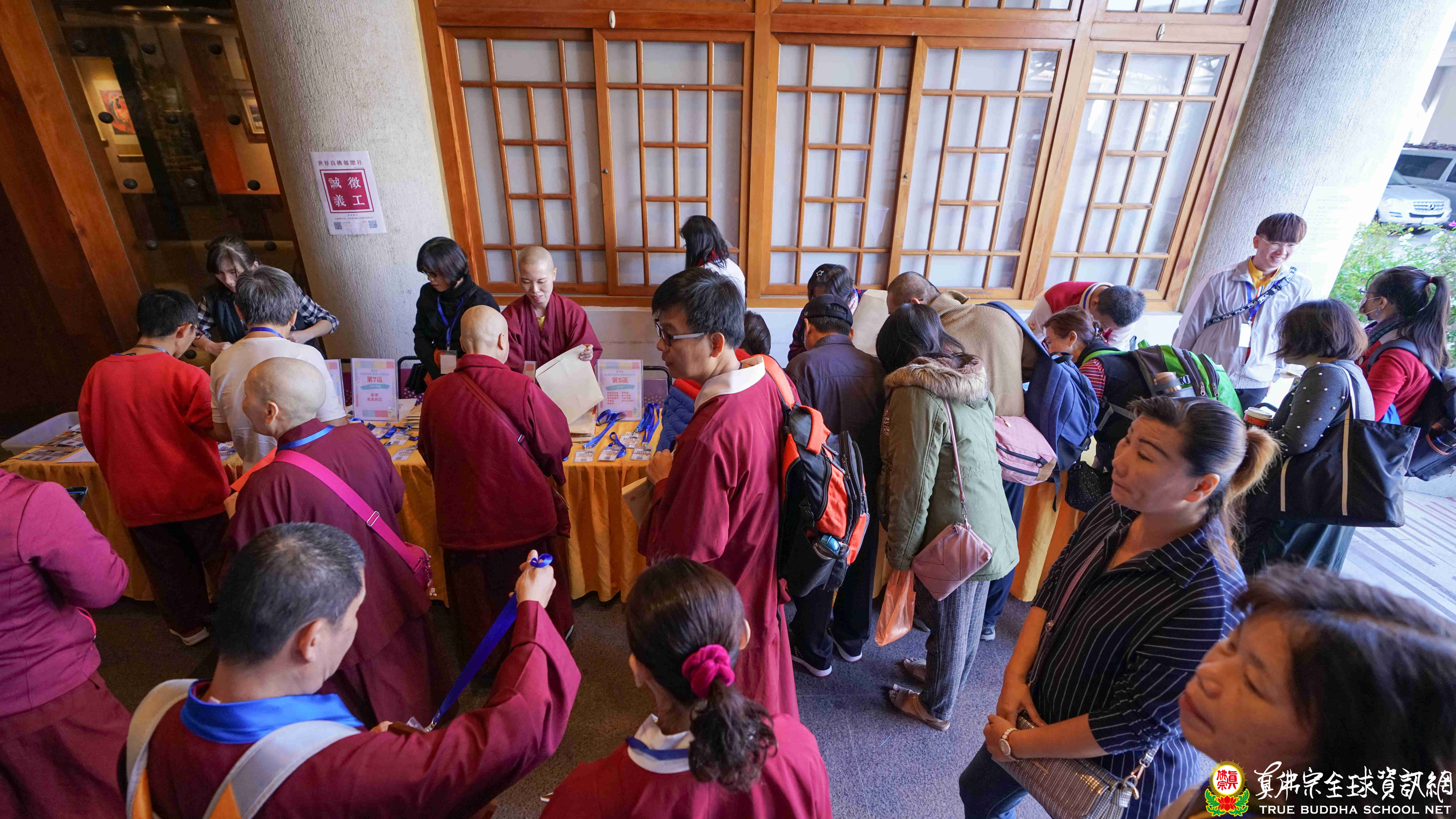 第一天早上8點左右,人潮已陸續湧入會場,宗委會會長蓮花程祖上師與各處處長,包括教育處長蓮訶上師、文宣處長蓮悅上師、法務處長蓮東上師及密教總會理事長蓮歐上師、台灣雷藏寺蓮哲上師、蓮栽上師等皆已蒞臨設於密壇的會場,報到處、真佛般若藏服務處也已就緒展開服務,密壇內工作人員有條不紊地引領與會學員分區入座。此次活動,宗委會特別設計QRCode在每位學員名牌上,直接以名牌掃描簡化簽到手續,使報到流程更加簡捷便利。