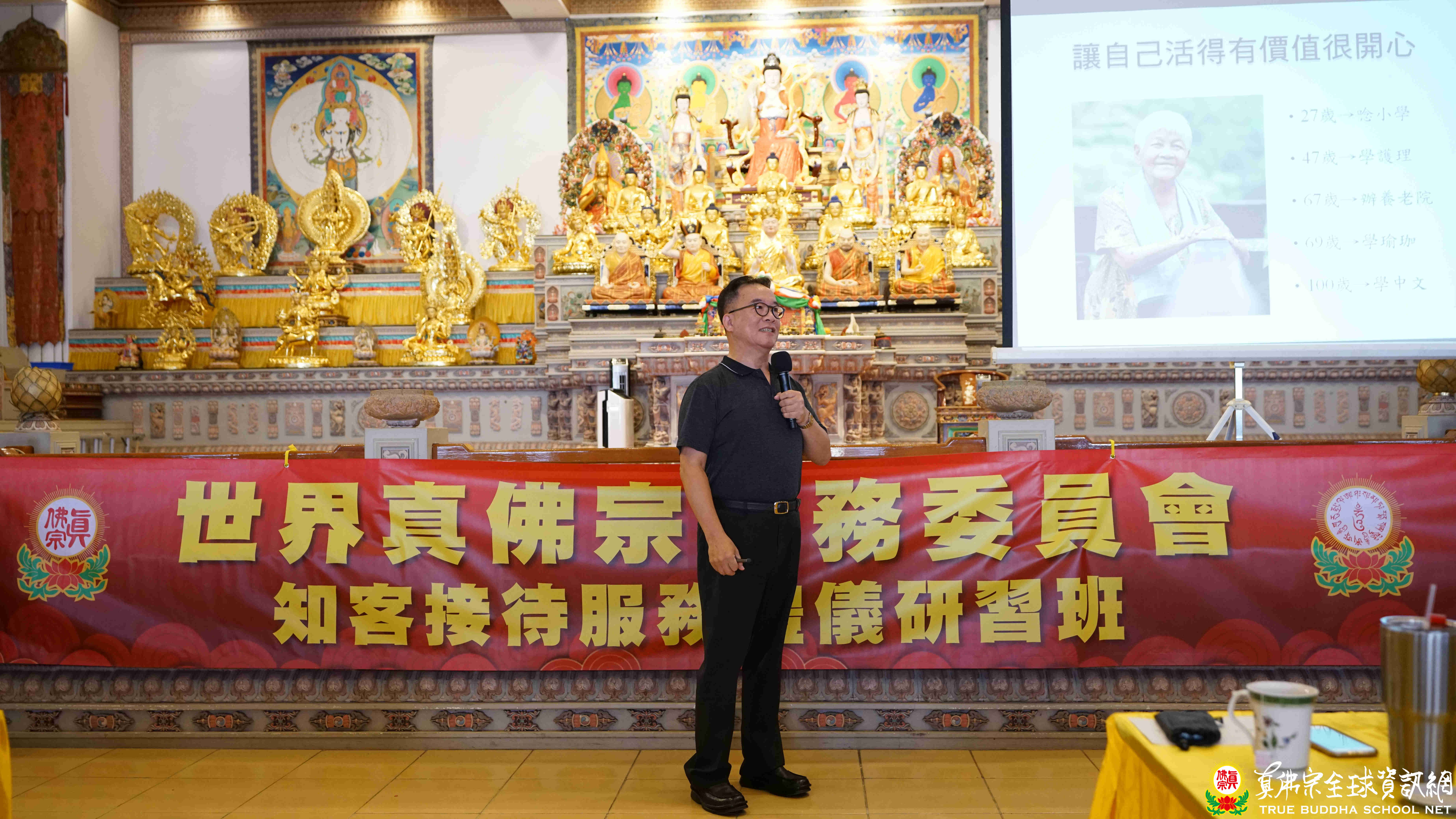 世界真佛宗宗務委員會於2019年11月30日(星期六)至12月1日(星期日)假座台灣雷藏寺首次舉辦二天的知客研習活動,有來自世界各地50個以上的道場代表,包括上師、教授師、法師、講師、助教、道場知客人員、各活動知客義工、義工團共超過300人出席與會共襄盛舉。這是宗內第一次舉辦以知客為主題的講座,備受矚目,主辦單位特別邀請台灣著名的企業講師方信智老師,來為這次研習授課,分享知客接待服務禮儀。