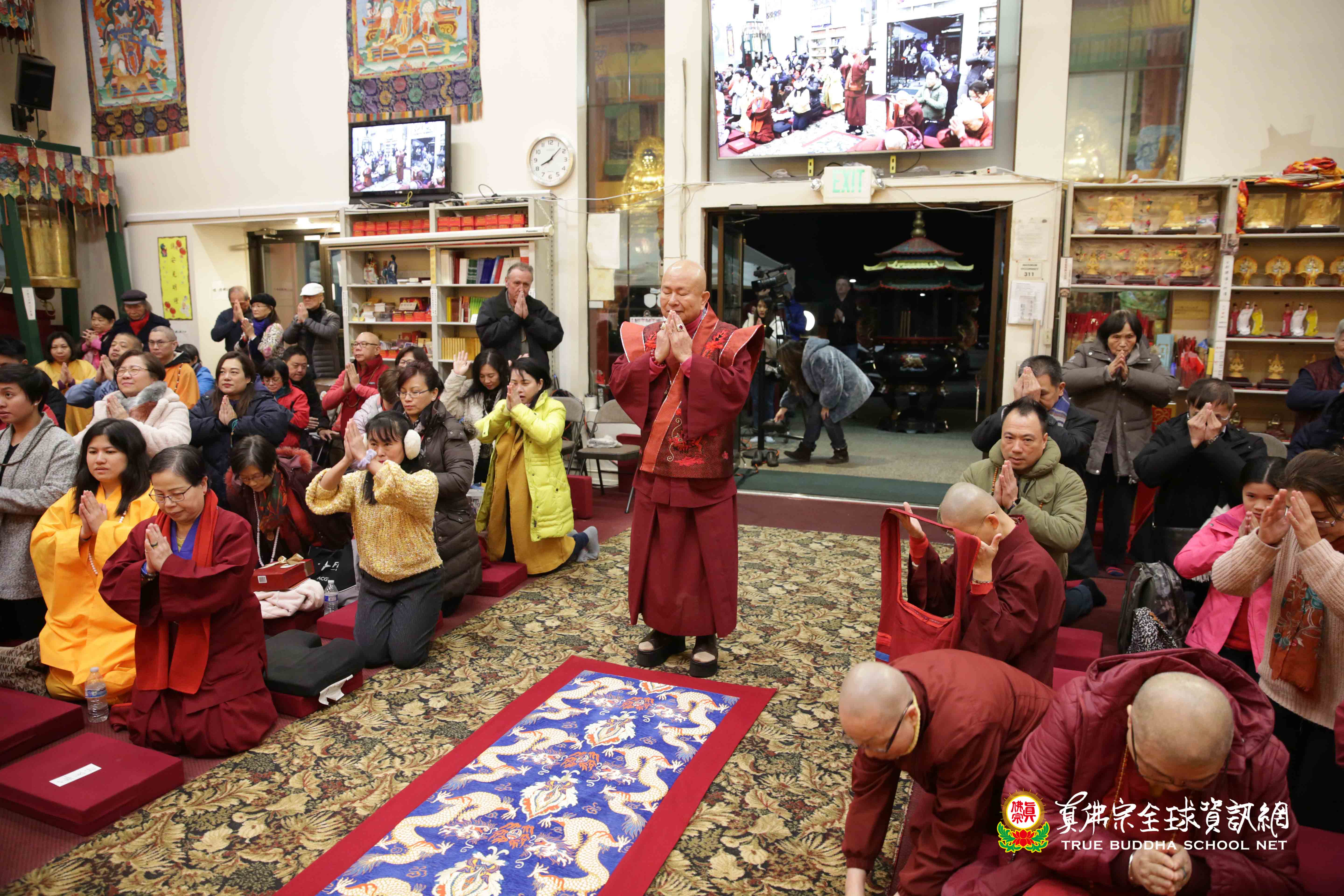 會後,聖尊為求皈依的信眾賜受殊勝的皈依灌頂、加持大悲咒水,以及開光佛像。臨行前,聖尊還為與會大眾摩頂加持如願。步出大雄寶殿的大門,在迎面拂來的寒風中,望著聖尊慈愛的身影,回想聖尊在最後開示的結語,祂的智慧比任何人都高,祂的身體比任何人都強,這如此強大堅決的自信,讓弟子們的內心充滿了敬仰的澎湃,能皈依修行已大成就的根本上師,是非常值得驕傲的。