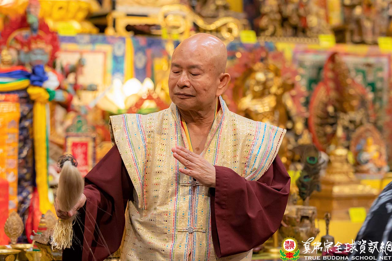 2021年7月3日,西雅圖雷藏寺同修蓮花童子本尊法。同修後,聖尊蓮生法王先帶領大家敬禮傳承祖師、壇城三寶、同修的本尊蓮花童子,然後再跟大家問好。