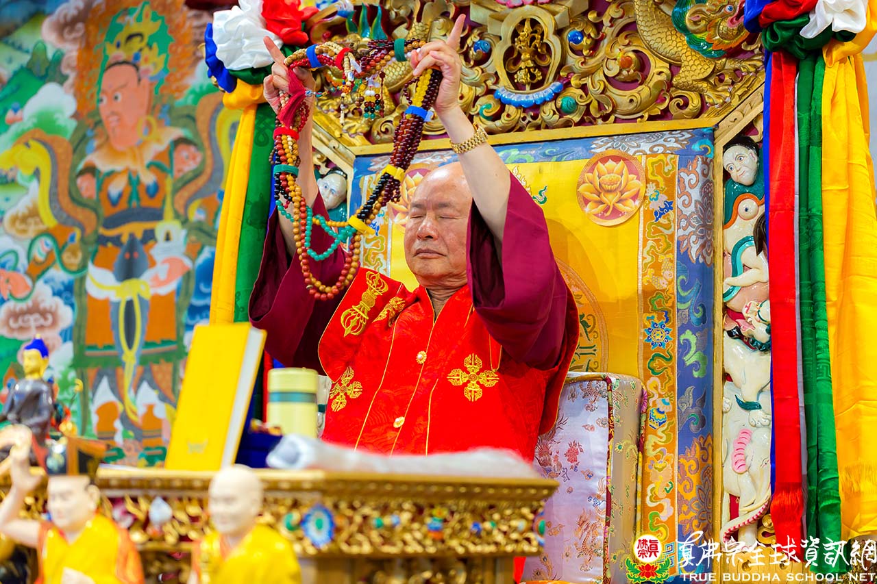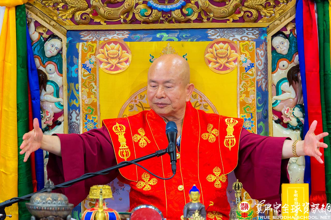 法王告訴大眾今天護持和主祈法會的人有福了,因法王看見金剛鈎三轉,財富如虛空中的供養雲一樣,無量無邊,賜給與會大眾。此場景有如法王當年去台灣銀行看風水,鈔票堆積如山,一望無際。此外,極樂世界許多七珍八寶都是勾財天女鈎來的,包括華嚴淨土的七寶行樹、觀世音菩薩圓通淨土的甘露鈎回摩訶雙蓮池、鈎金沙琉璃做宮殿及帝網明珠作光明。祂將最好的鈎到極樂世界,是非常偉大的財神。隨後,法王提醒大家釋迦牟尼佛有一個戒律,若非有要事而不克出席,弟子在距離方圓50里內不參加根本上師的法會,便是犯了戒律中的輕忽罪,未來七世生將降生在貧窮之家。如果永遠不參加根本上師法會,將會因輕視所有法會,對法不聽不理而成為輪迴一百世的蛤蜊。法王解釋戒律的緣由是因為六個比丘常犯戒,所以佛陀制定了所有一切的戒。同時讚歎須菩提,當年釋迦摩尼佛二轉法輪宣說無相的法義,須菩提都如約而至。祂只缺席過兩次,原因是生病而無法行走和家中奔喪,因此祂是精進的代表。