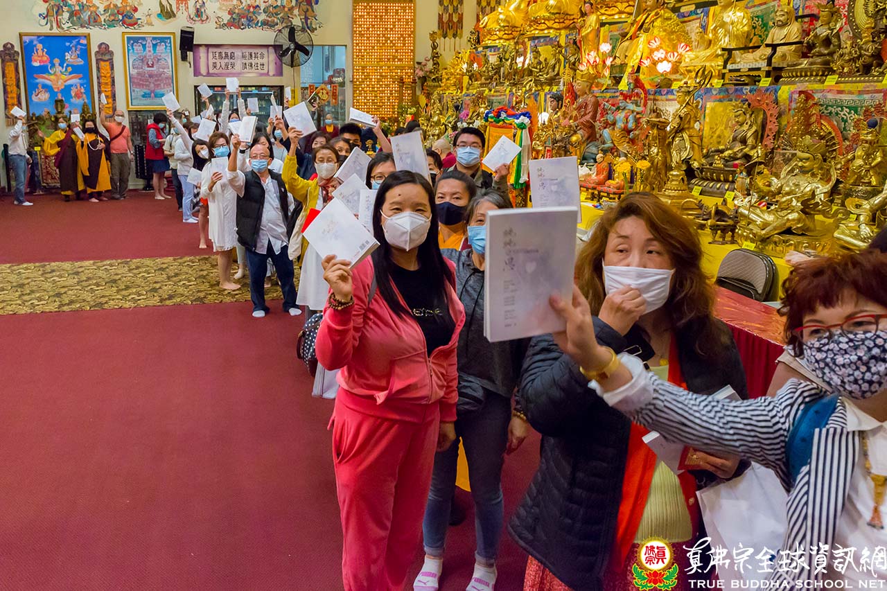 這一年多來疫情影響甚鉅,新冠病毒帶來的恐慌、諸多防疫規定下的不便,直接影響著全球的政治、經濟,甚至改變了人類的生活習慣與文化。雖然國際旅遊有種種嚴格的防疫規定,從世界各地仍然湧來許多朝聖的同門,滿懷著孺慕的思念,大家遵循著寺方最新的防疫規定,有秩序地進到祖廟神聖莊嚴的壇城,等待沐浴蓮花童子的淨光、親見根本上師的容顏。師佛眷顧弟子的心、弟子想念根本上師的心,彷彿是夜空中的月光與星光,互相陪伴,熠熠生輝,在秋季阿彌陀佛超度大法會的前夕,交織成了一幅最美麗而動人的畫面。