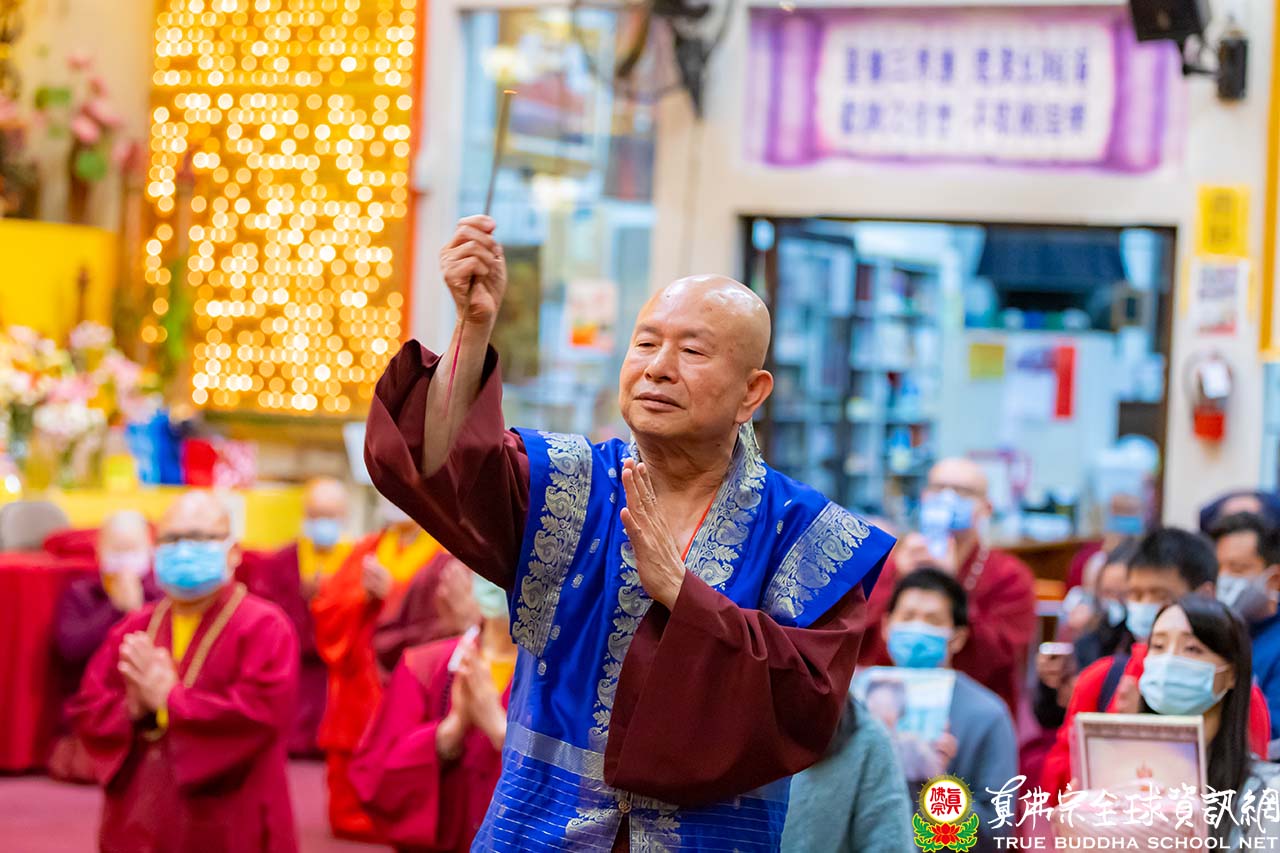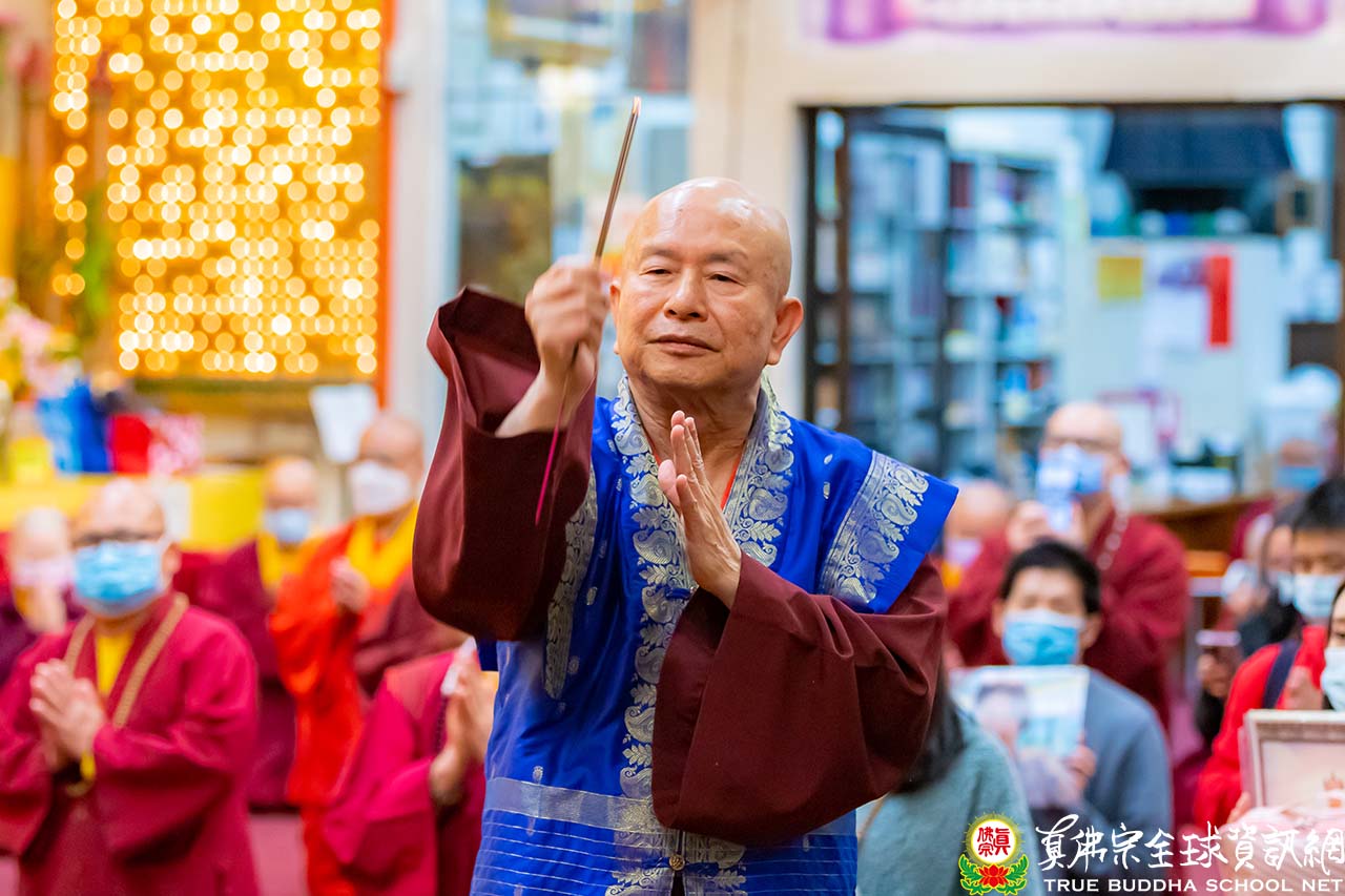二零二一年九月十一日,聖尊蓮生活佛盧勝彥主持西雅圖雷藏寺週六同修「藥師佛本尊法」暨講解《金剛經》。