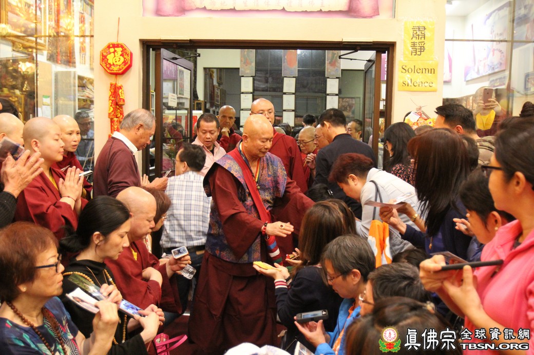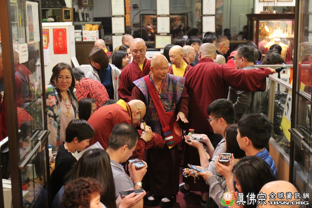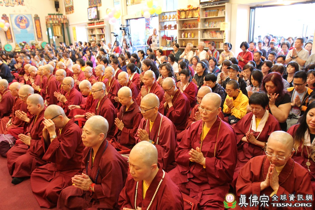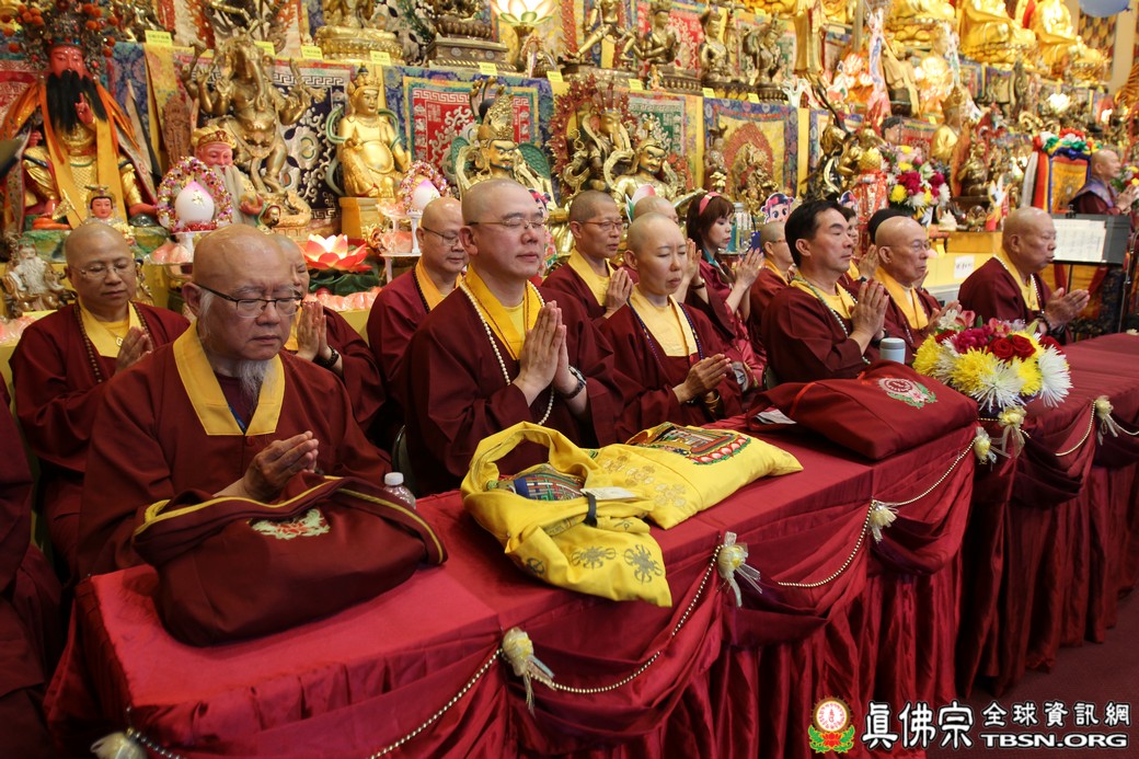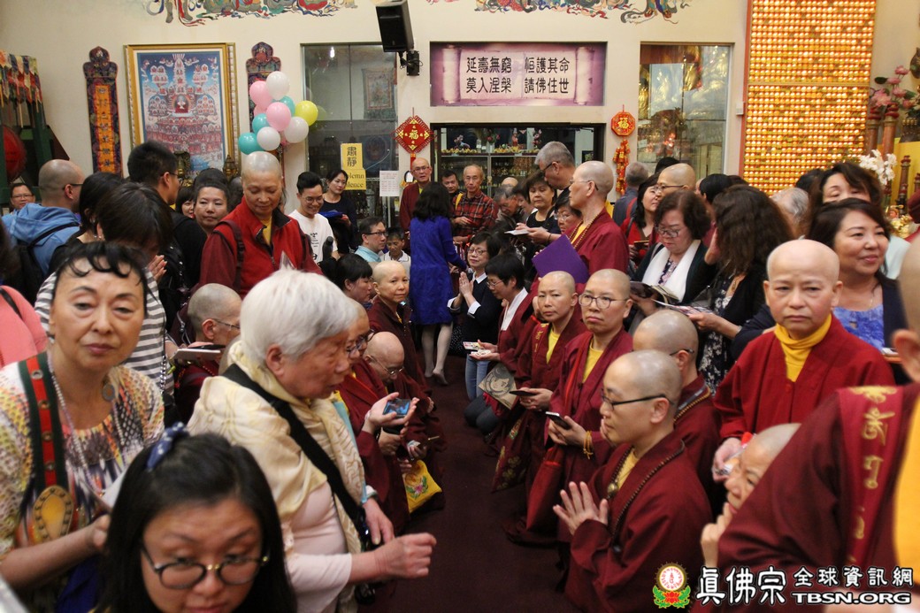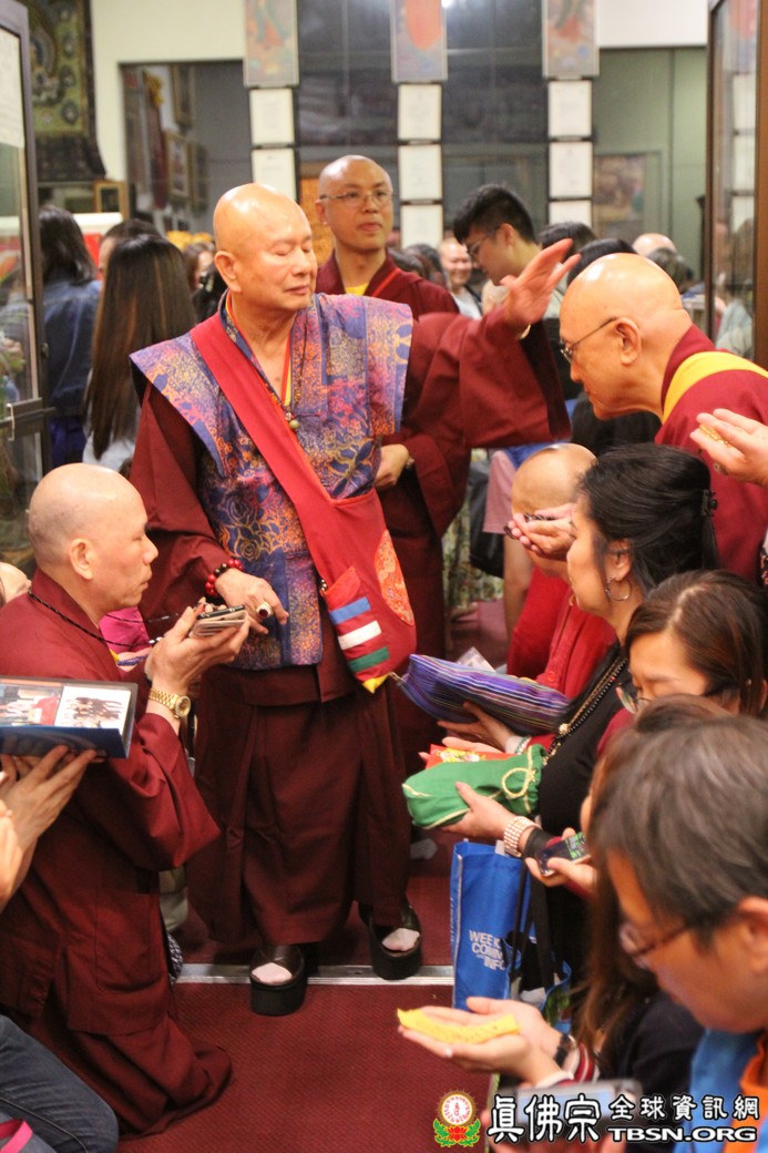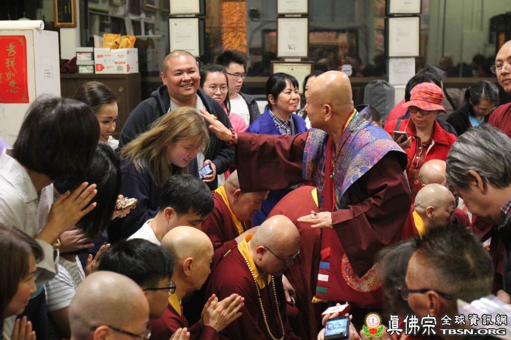 在精闢的開示後,雷藏寺唱誦組帶領大眾唱誦阿彌陀佛聖號。會後,聖尊為求皈依的信眾賜受灌頂,並加持大悲咒水、開光佛像。最後祖廟推出大型的生日蛋糕慶賀聖尊的生日,大家一遍又一遍的齊聲歡唱不同語言的生日快樂歌,聖尊與師母一起切蛋糕,滿堂的掌聲、喝采聲不絕於耳,無論是現場或是收看網路直播的同門,全世界的弟子都誠心的對根本上師獻上滿滿的祝福。