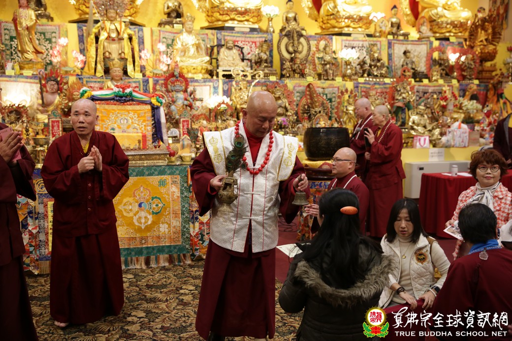 在聖尊精闢的開示結束後,祂為求皈依的信眾們賜受灌頂,並加持大悲咒水,以及開光佛像,臨行前慈悲為大眾摩頂加持滿願。聖尊晚上的慈悲教化,祂的一句「我無來去」,真的令弟子心中洶湧著澎湃的感動,只要弟子們虔信根本上師,只要弟子們憶念根本上師、只要弟子們持上師心咒,祂照樣可以在弟子面前說法。謹此一心虔誠禮敬無上大恩根本傳承上師。