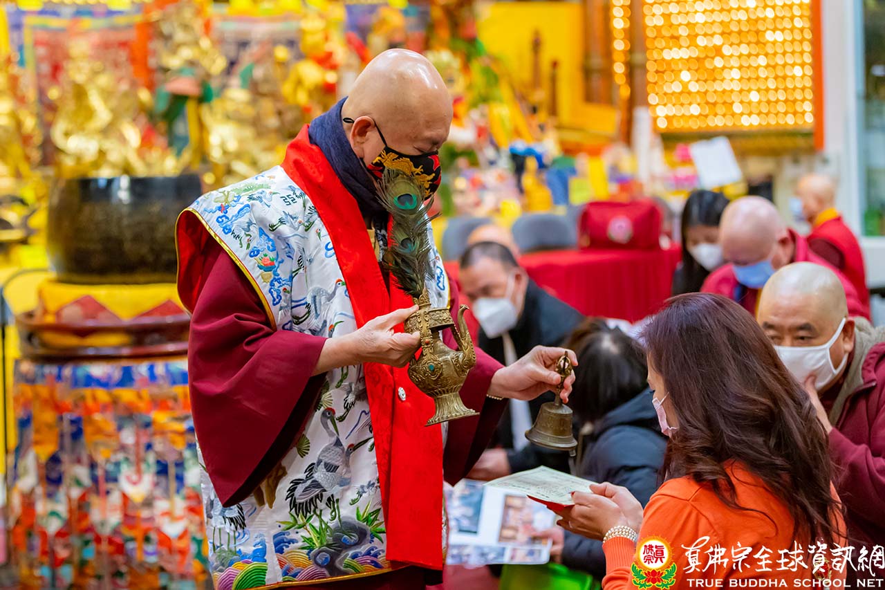 聖尊蓮生活佛盧勝彥精彩奧妙的金剛經說法開示後,慈悲為弟子善信們做皈依灌頂,並加持大悲咒水及開光佛像,還為與會大眾以拂塵摩頂加持。步出寺門,迎著皎皎月色,心中流轉著滿滿法味,聖尊殊勝佛慧的金剛經講譯,將金剛經的真諦講解得絲絲入扣,深入淺出的讓弟子們能明白、受益。