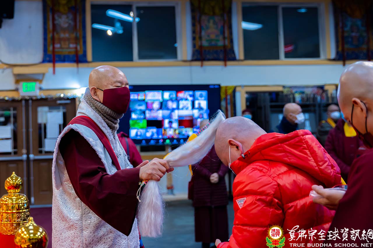2022年1月9日下午三點,西雅圖的天氣依舊寒冷,但無阻弟子們參與法會的熱情與期待。法會開始前,大會司儀特意叮囑大家注意地滑,小心安全。隨著車子緩緩駛來,大家立即各就各位,恭迎最尊敬的根本傳承上師聖尊蓮生法王。法王帶領大眾頂禮壇城後,便與Zoom上弟子互相問好。隨後,司儀恭請法王上法座,蓮花童子護摩法會正式開始。