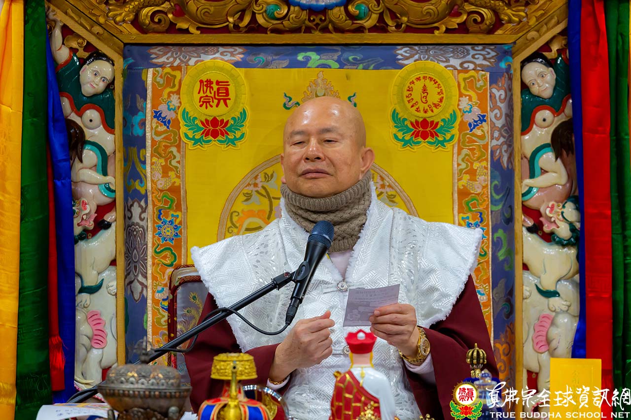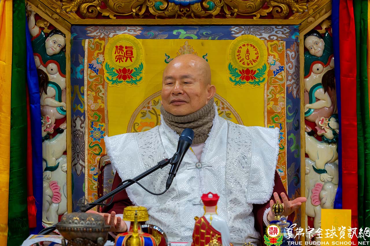 法王分享了金剛經中空的智慧後,便與大家一同欣賞來自教育處的影片。影片中記載了真佛網路大學第一門課【包羅萬象的佛學】課程的進步,護持真佛教育的弘法人員及學員都呈現在畫面中,令人欣喜讚歎。