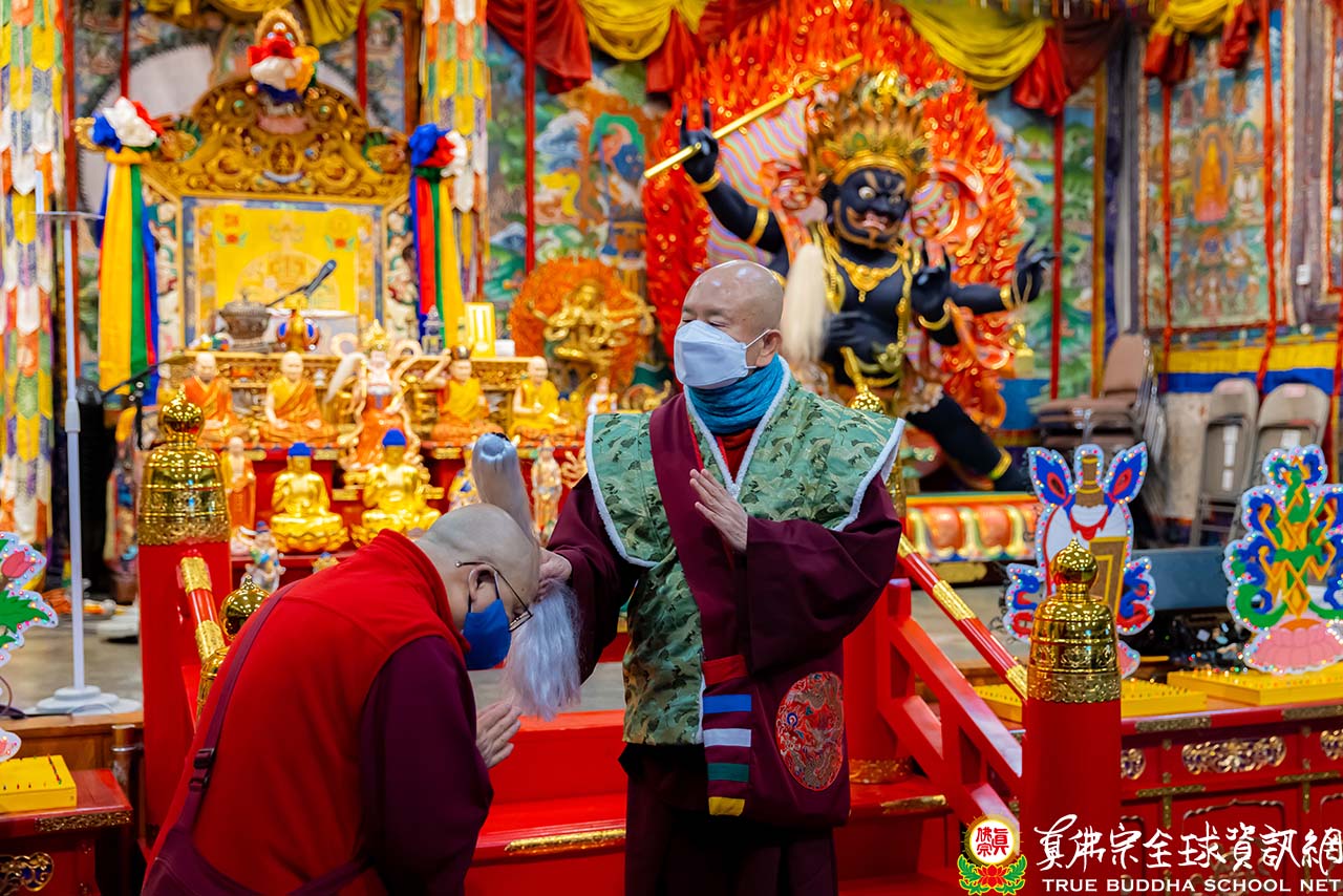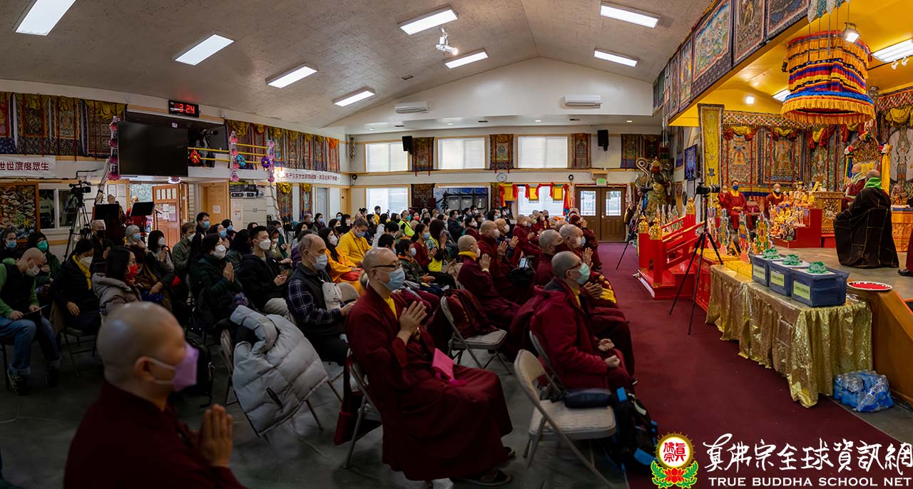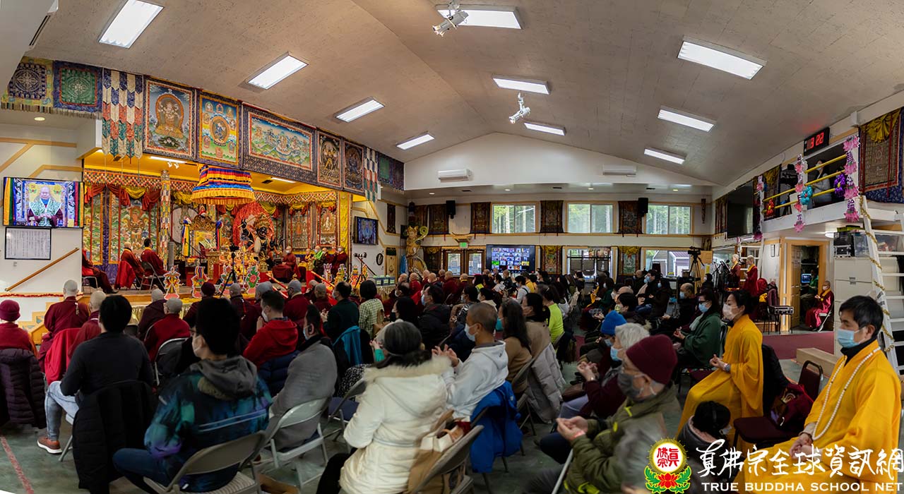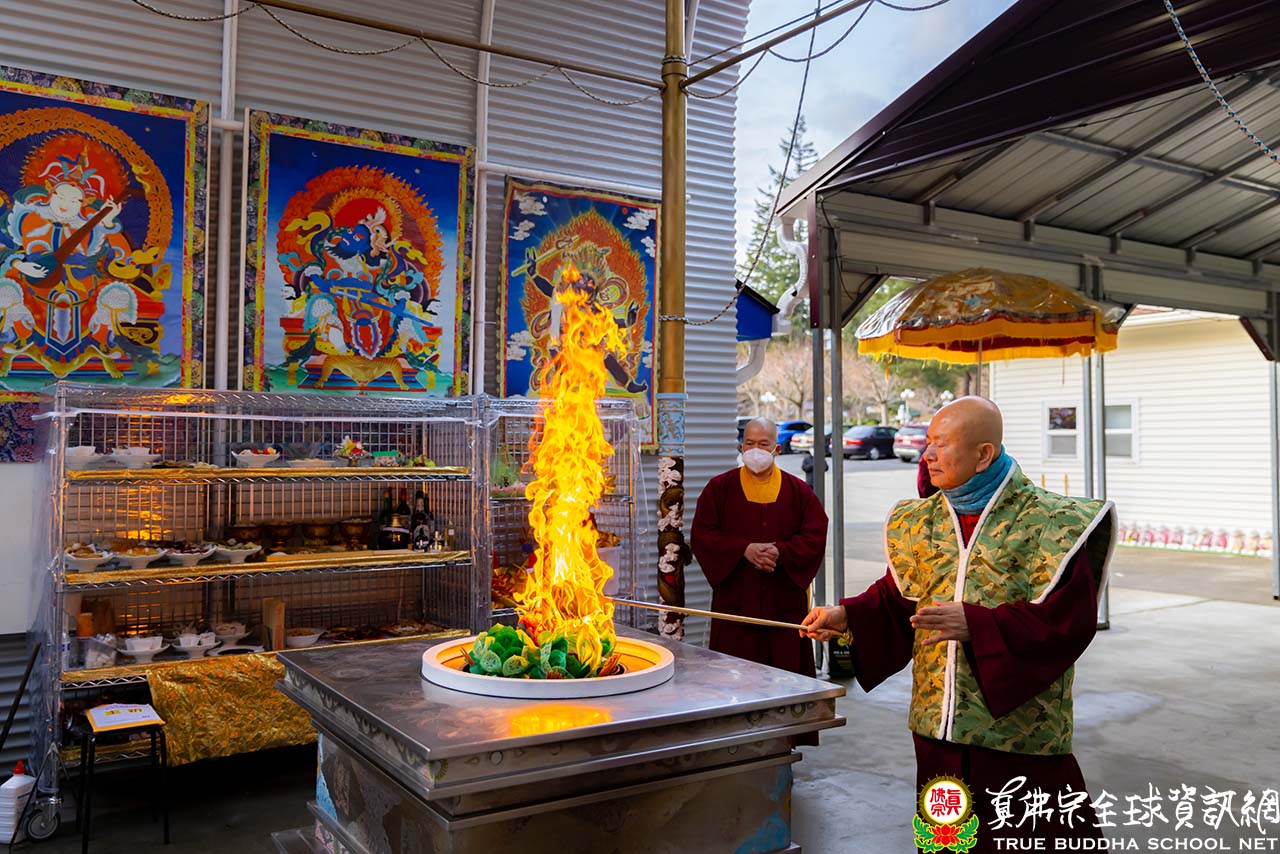 2022年01月16日,下午三點,西雅圖彩虹雷藏寺舉行了殊勝的綠度母護摩大法會,雖是一個寒冷的下午,當蓮生法王的車子緩緩的駛來時,大眾內心的溫度就隨之上升。在頂禮壇城後,法王與ZOOM線上的弟子們親切的打著招呼,這次線上的弟子也包括了在美國加州舉行書展活動的真佛般若藏的執行長周律師和很多的義工同門。每個人的臉上都掛著合不攏的笑容,那份喜悅感染了線上和現場的所有人。