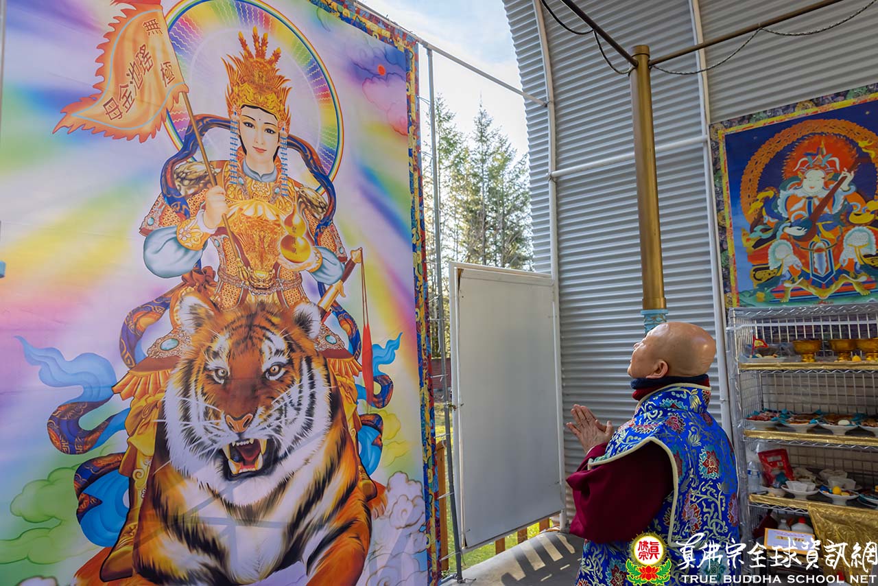 2022年2月6日大年初六,大家都沉浸在歡慶農曆新年的喜悅之中。這一天,美國西雅圖彩虹雷藏寺恭迎聖尊蓮生法王主壇虎頭金剛護摩法會。法王抵達雷藏寺後,先帶領大眾頂禮壇城,然後移駕至Zoom屏幕前與世界各地的弟子互相問安。弟子們紛紛向法王祝賀新年快樂,氣氛其樂融融。恭請法王上法座後,農曆新年的第一場護摩法會正式開始。