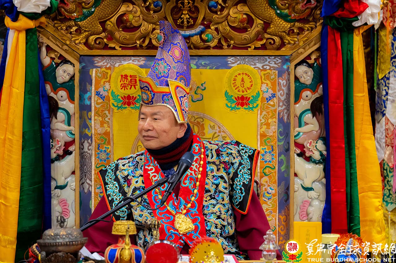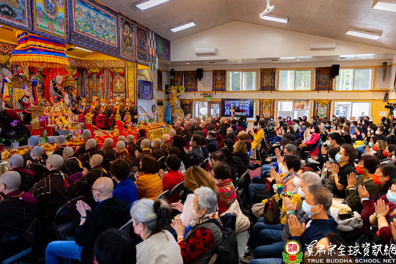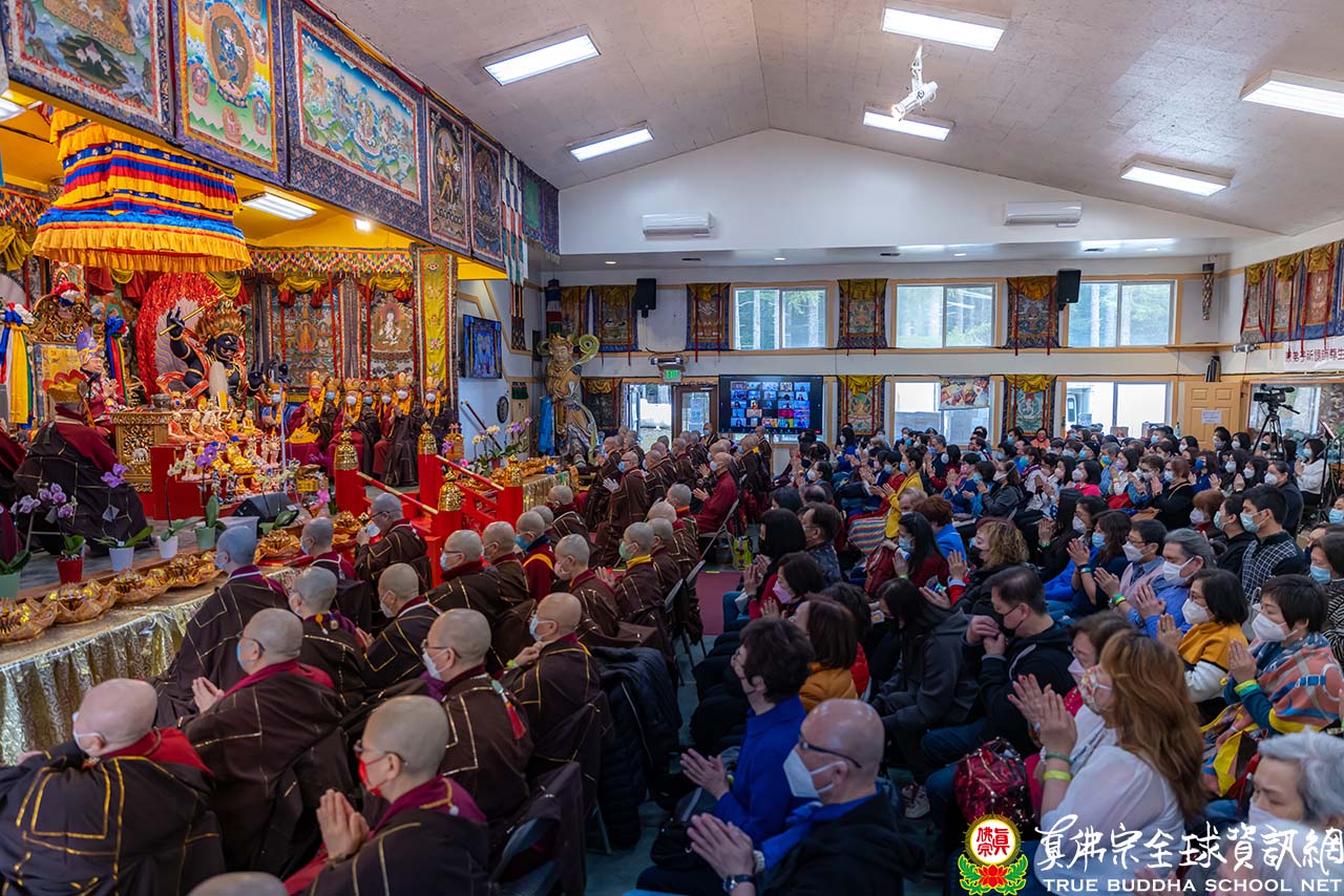 法王精闢的開示,有著一語道破夢中人的震撼。弟子們響起了歡喜、感恩、幸福的掌聲。接下來,法王為所有的與會者做了大幻化網金剛的灌頂,每個人滿懷欣喜的走過灌頂幡,在線上的弟子們也一同觀想著,祈禱著,雖然這不代表得到遙灌頂,但是強烈的法流迴蕩在世界的各個角落。灌頂後,聖尊再次熱切的和Zoom線上的弟子們告別,儘管目前很多人還無法親自前往參與法會,但相信虎年的曙光已至,願疫情早日遠離,而師徒相聚的日子早日到來。