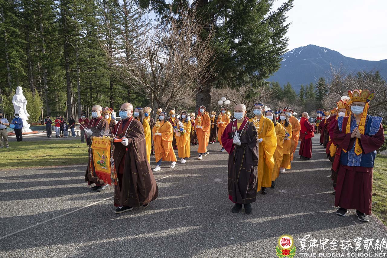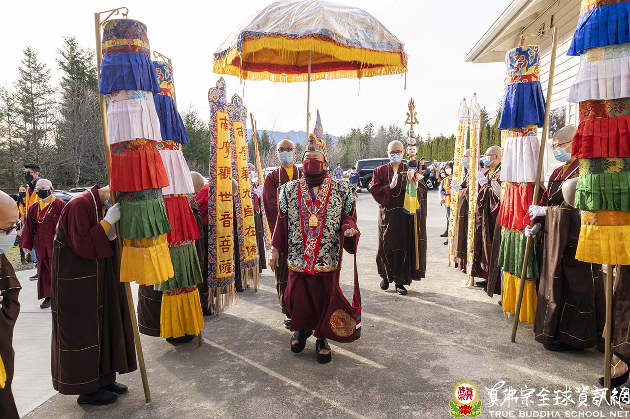 2022年02月13日下午三時,彩虹雷藏寺舉行了殊勝的大幻化網金剛護摩大法會,儘管疫情還未完全消除,但法王聖尊蓮生活佛慈悲,希望圓滿每一位眾生,主壇了這一場萬人期待的大法會,為弟子們加持,賜福健康平安。氣勢恢宏的大法會終於在兩年的隔離後回歸了眾人的視野,莊嚴的迎師團,三點時分準時出發了,浩浩蕩蕩的上師團隊伍緩慢莊嚴地向護摩殿行進,法王在隊伍的最後出現,虛空之中瑞雲千條,大日現出光環,光燦大地。護摩殿蓬蓽生輝,不僅現場爆滿, Zoom線上也有七百餘人,YouTube上有三千餘人共同參加當日的盛會。