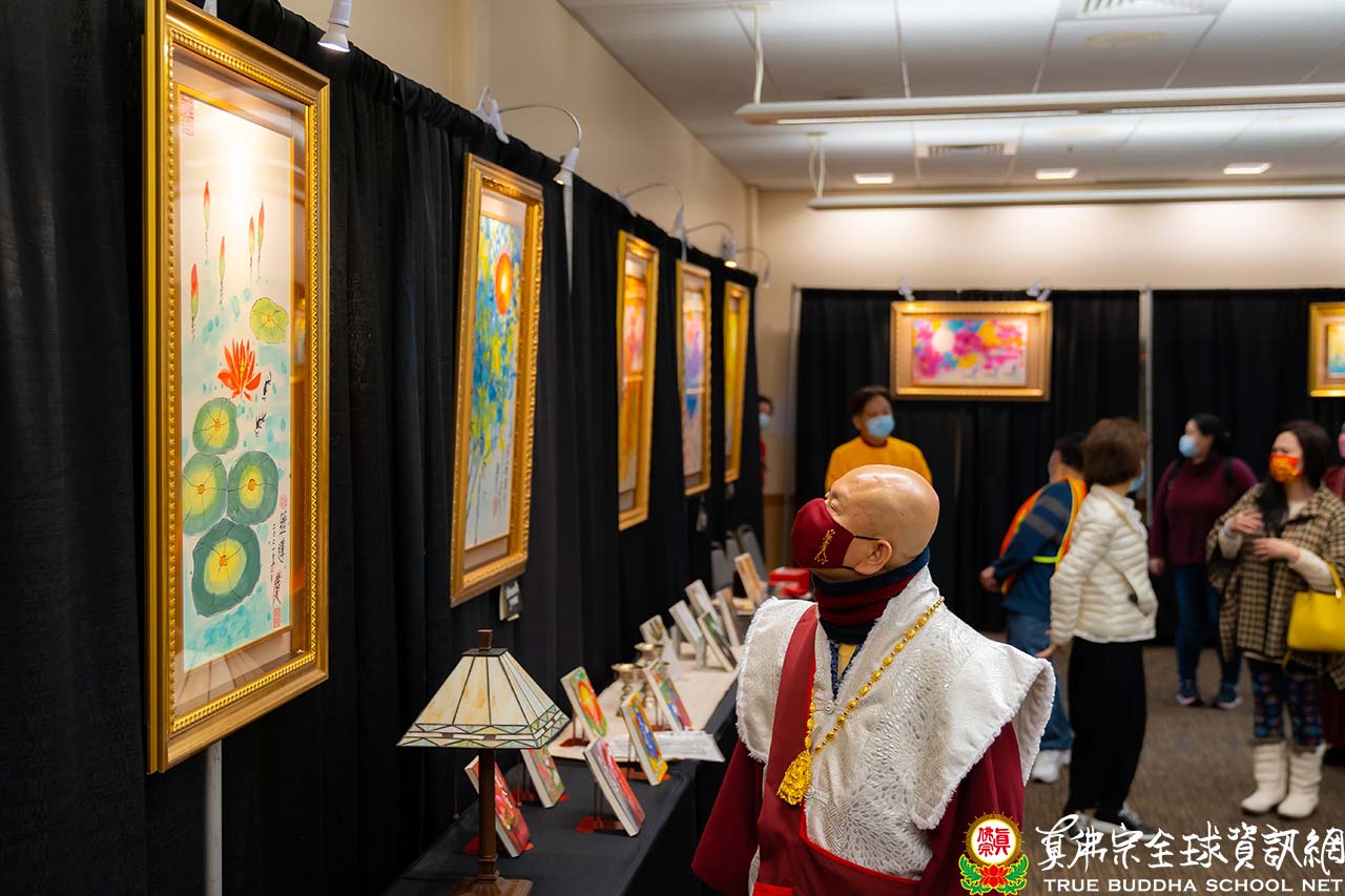 是日下午近兩點時,弟子們恭敬頂禮並以熱烈掌聲迎接法王聖尊蓮生活佛蒞臨法會現場。聖尊加持往生位、延生位以及大悲咒水,接著參觀由真佛般若藏設置的「曙光藝術畫展」。聖尊筆墨弘法52年,文章畫作富含智慧與加持,慈佑眾生。當日展出部分珍藏墨寶畫作及以畫作翻新封面之著作文集,幅幅皆引人入勝,令人大飽眼福。宗委會亦設有功德總會十二吉祥天女贊助方案的攤位,十二吉祥天女具有種種殊勝功德,此套精品更特以聖尊的髮舍利摻入天女髮際。聖尊一一參觀各個攤位,慈悲賜予加持。