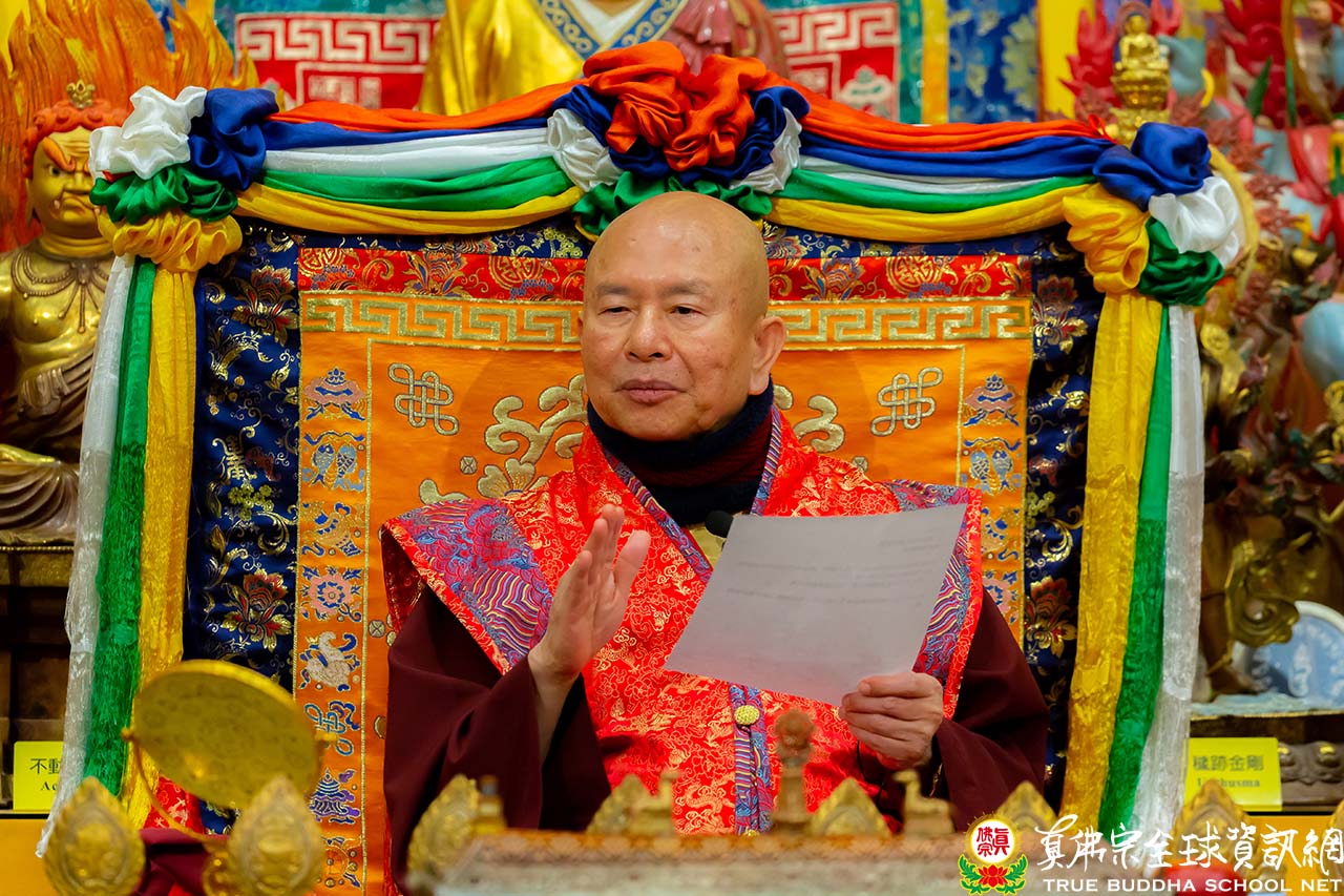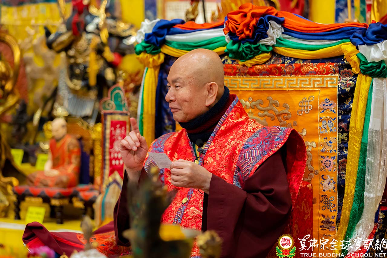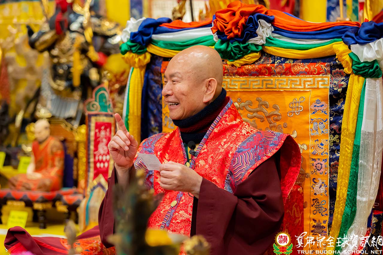 聖尊彌足珍貴的金剛經講釋結束後,慈悲為新皈依弟子做皈依灌頂,並加持大悲咒水、開光佛像、加持眾弟子。祖廟特別準備了大蛋糕慶祝聖尊出家三十六周年紀念,在充滿感恩的祝賀歌聲中,聖尊吹蠟燭、切蛋糕。因為有聖尊的誓願度眾生,才有今天真佛宗的五百萬弟子。祝願聖尊佛體康泰長住世,常樂自在度眾生!