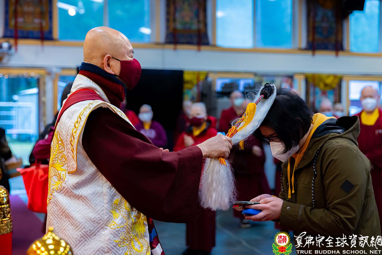 開示完畢後,法王帶領大家頂禮壇城,然後與Zoom上的弟子一一告別。再賜授現場與會大眾「不空羂索觀音法」灌頂後,本日法會也圓滿結束。