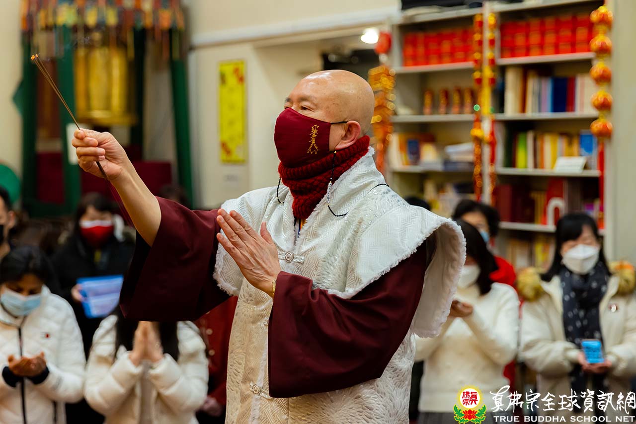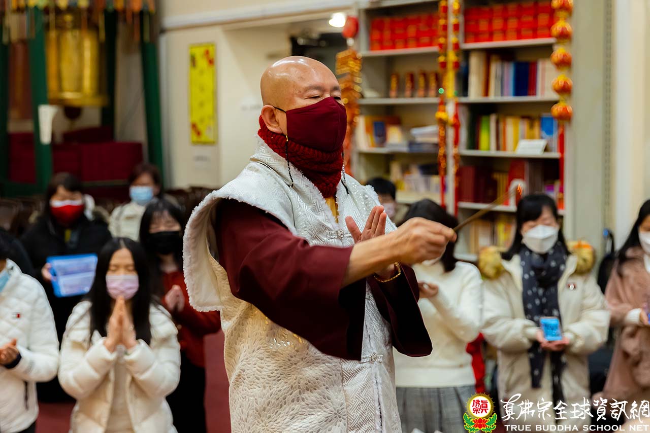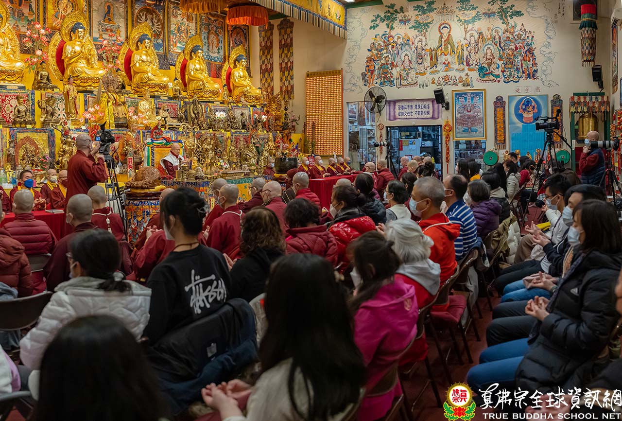 濛濛細雨中,西雅圖迎來春分的節氣,周六夜晚的雷藏寺熱鬧而溫馨。眾同門虔誠合掌,跟隨聖尊蓮生活佛盧勝彥一起頂禮壇城,進入同修。同修後大家專注地聆聽聖尊開示。