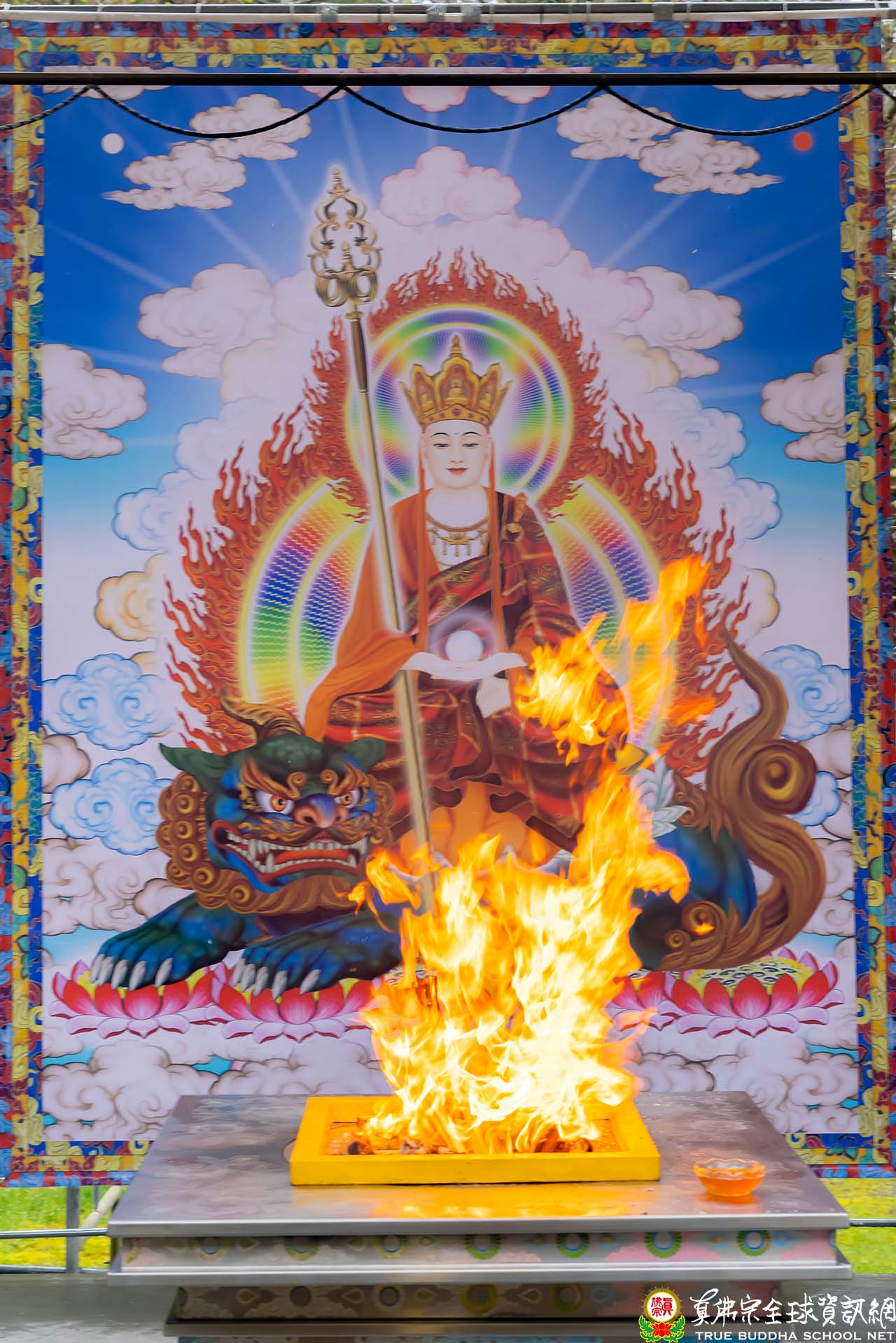 接下來,法王介紹今天護摩法會主尊「地藏王菩薩」以及九華山的來歷,是由行者金喬覺以身上的袈裟神變換來的,便在九華山建立了地藏菩薩的道場。蓮生法王開示今日護摩的覺受,在護摩開始的時候,地藏王菩薩現身告訴法王,祂在地獄道,法王在人道,地藏王菩薩是法王蓮生活佛的兄弟。地藏王菩薩的金剛號是悲願金剛,並且發的願是地獄不空誓不成佛,但地獄是永遠都不空的,法王感受到地藏王菩薩的悲心,便淚流滿面。