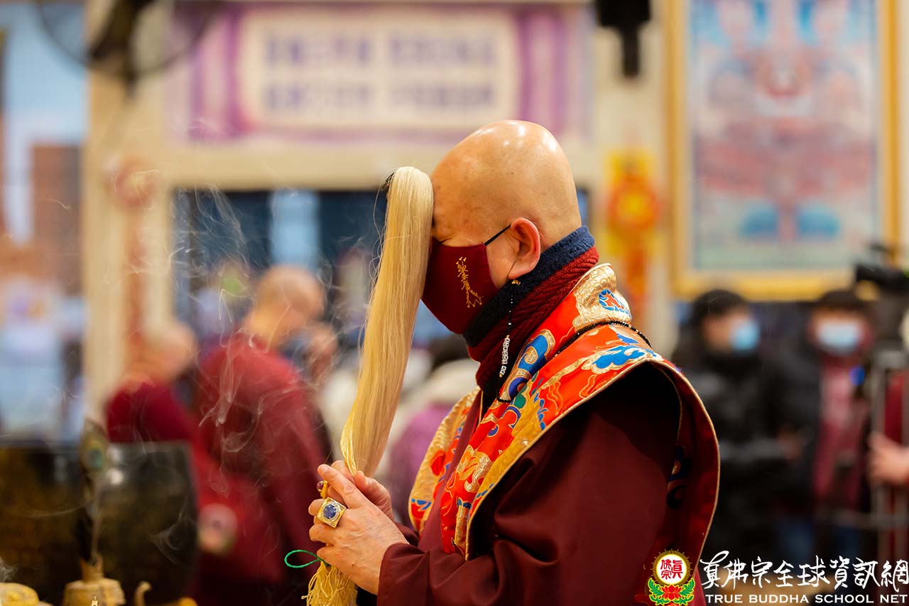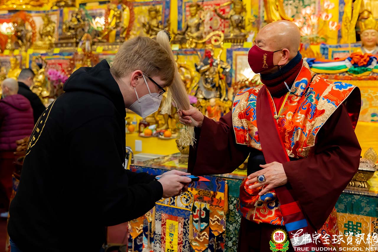 精彩寶貴的法語開示後,聖尊蓮生活佛慈悲賜授新同門皈依灌頂、加持大悲咒水暨開光佛像,並以拂塵一一加持眾人。真佛弟子因根本上師的啟發才能明白真實佛法,聖尊不僅是我們的大善知識,更是光明的來源,如此殊勝的蓮花童子因緣,應當把握今生實踐敬師、重法、實修。